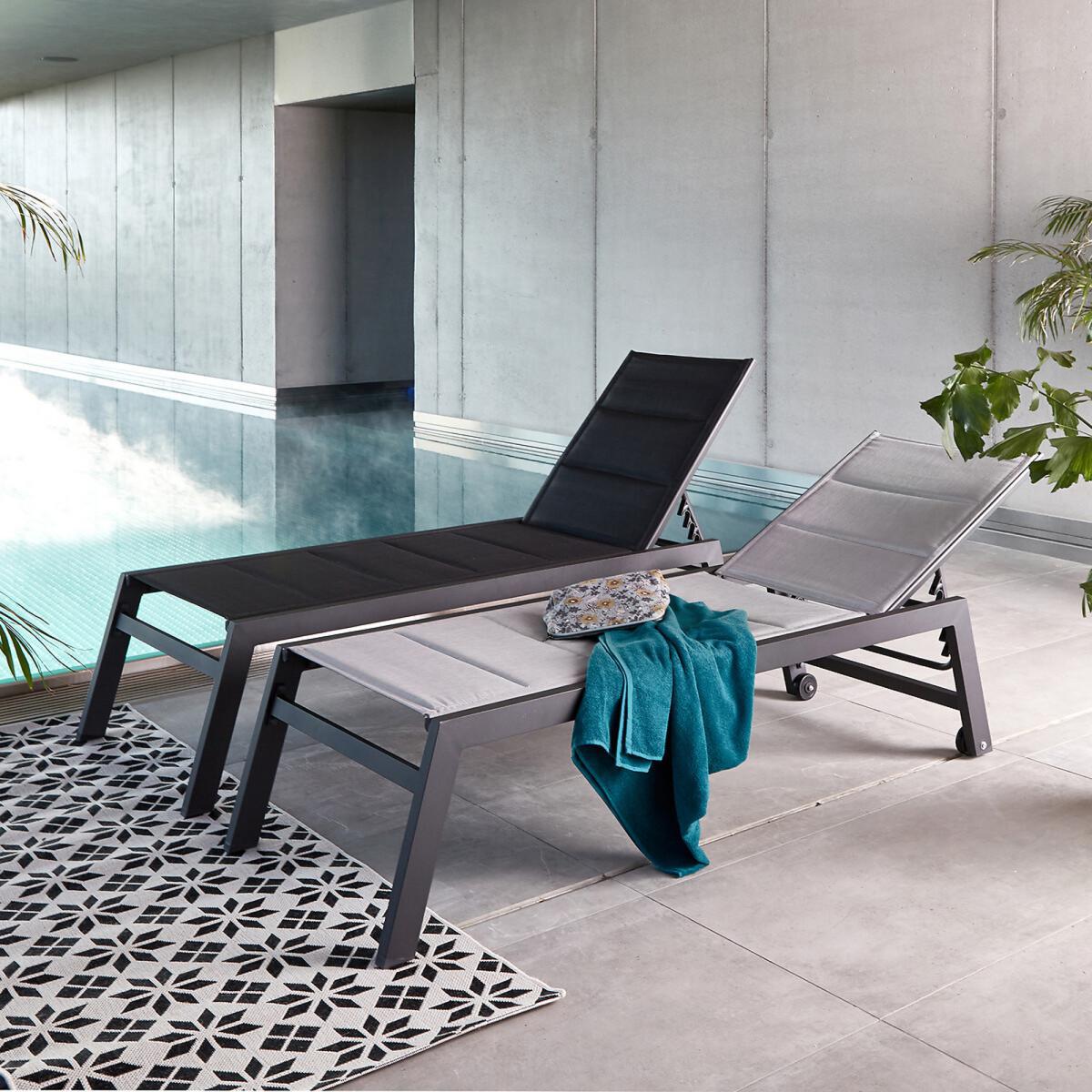 Lightweight but sturdy, the Topaze sun lounger is ideal for all kinds of outdoor spaces. Its 4x adjustable seat positions and comfortable quilted textiline fabric make it the perfect spot for a summer nap.
