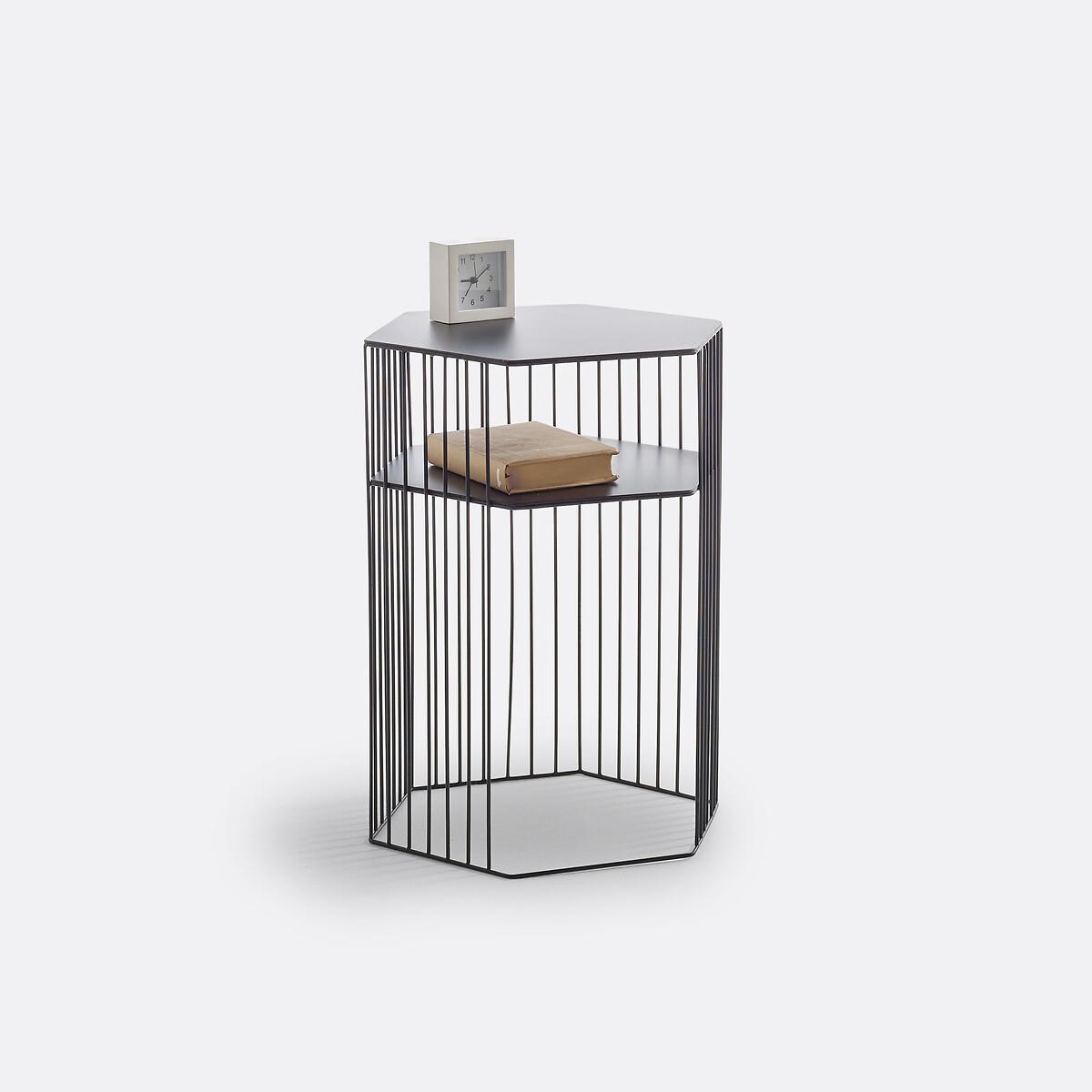 Topim two-tier wire bedside table. The Topim bedside table cleverly combines a designer look, current trends and practicality.