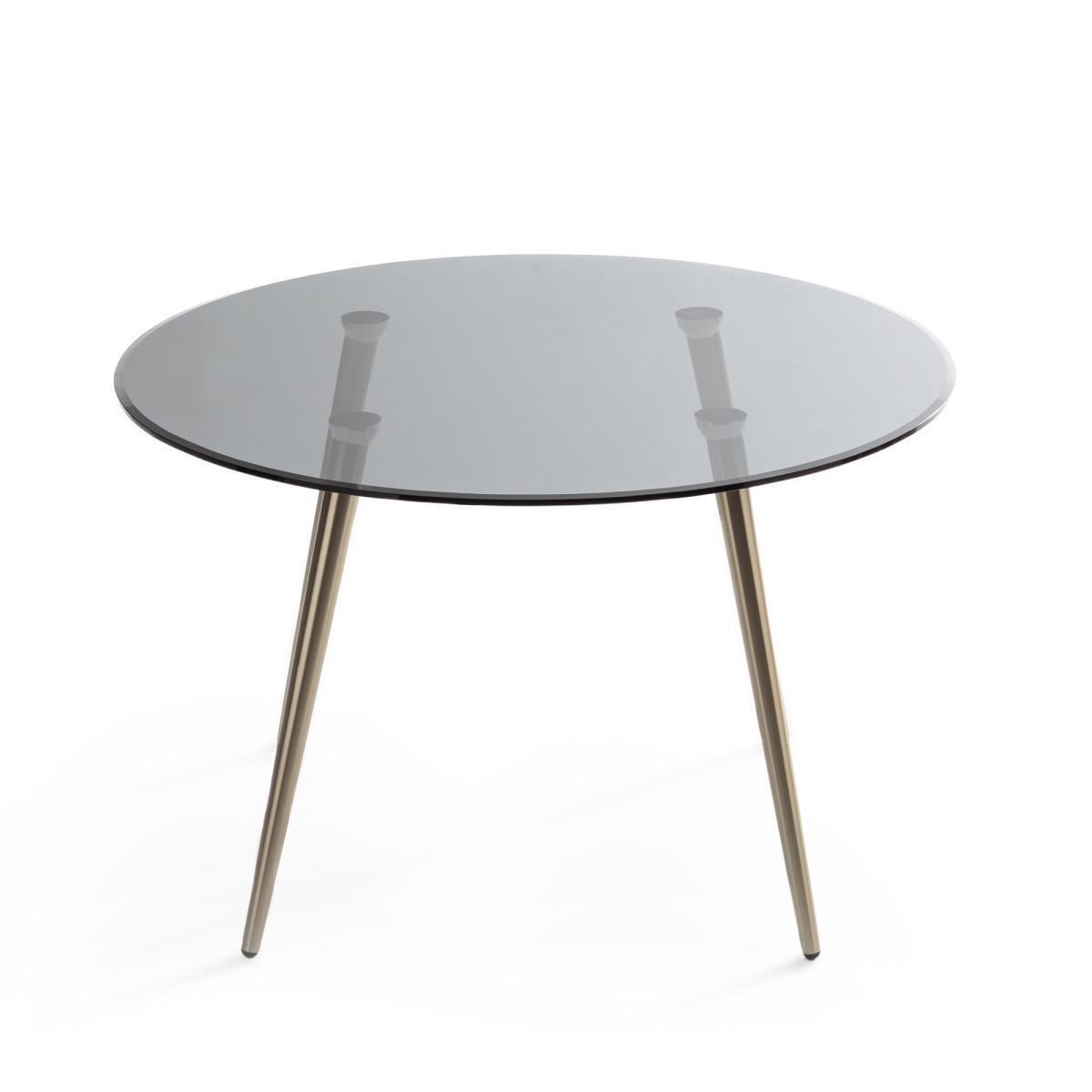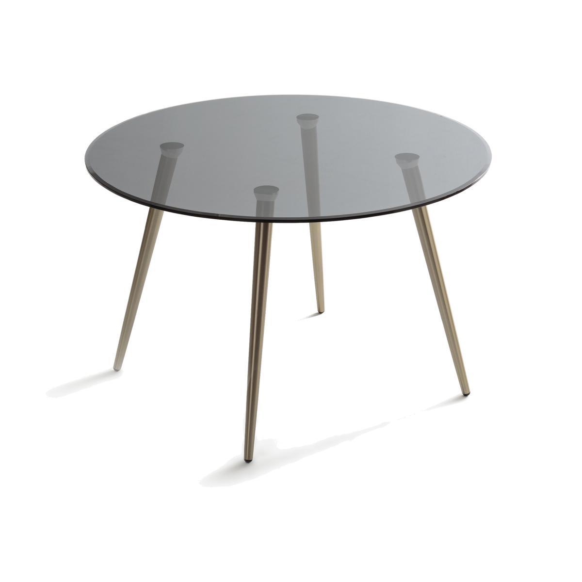 With a purity of lines and a remarkable simplicity of design: the Topim round dining table reveals its simple beauty. We love the superb finishes of the smoked tempered glass top mounted on 4 tapered metal legs.