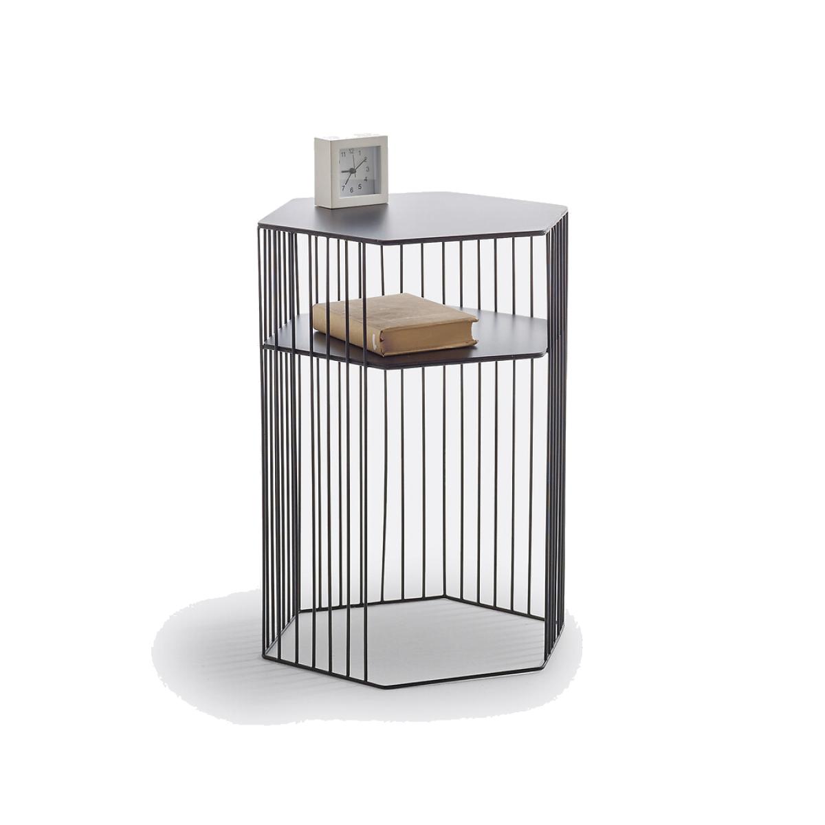 Topim two-tier wire bedside table. The Topim bedside table cleverly combines a designer look, current trends and practicality. Product Details • Two tier. • Wired steel with epoxy paint finish. Dimensions • Length: 41cm • Height: 56cm • Depth: 36cmDelivery:. Sold pre-assembled. Available for home delivery. Note! Please check that all access points are large enough to accommodate your delivery (doors, stairs, lifts). Parcel Dimensions:1 parcel • L53 x H70 x D53 cm • 9.5kg