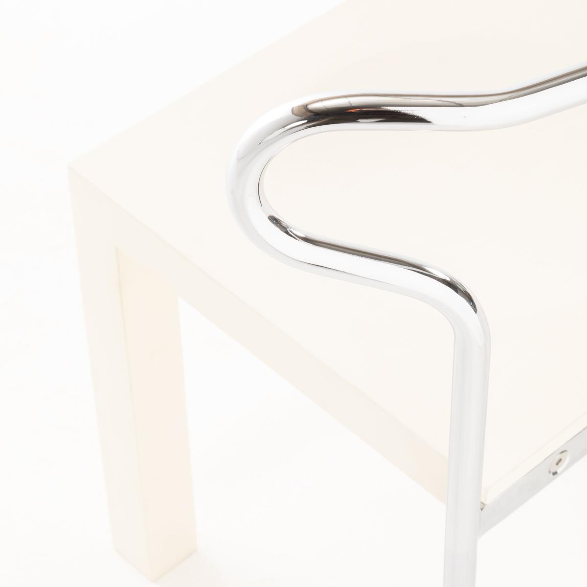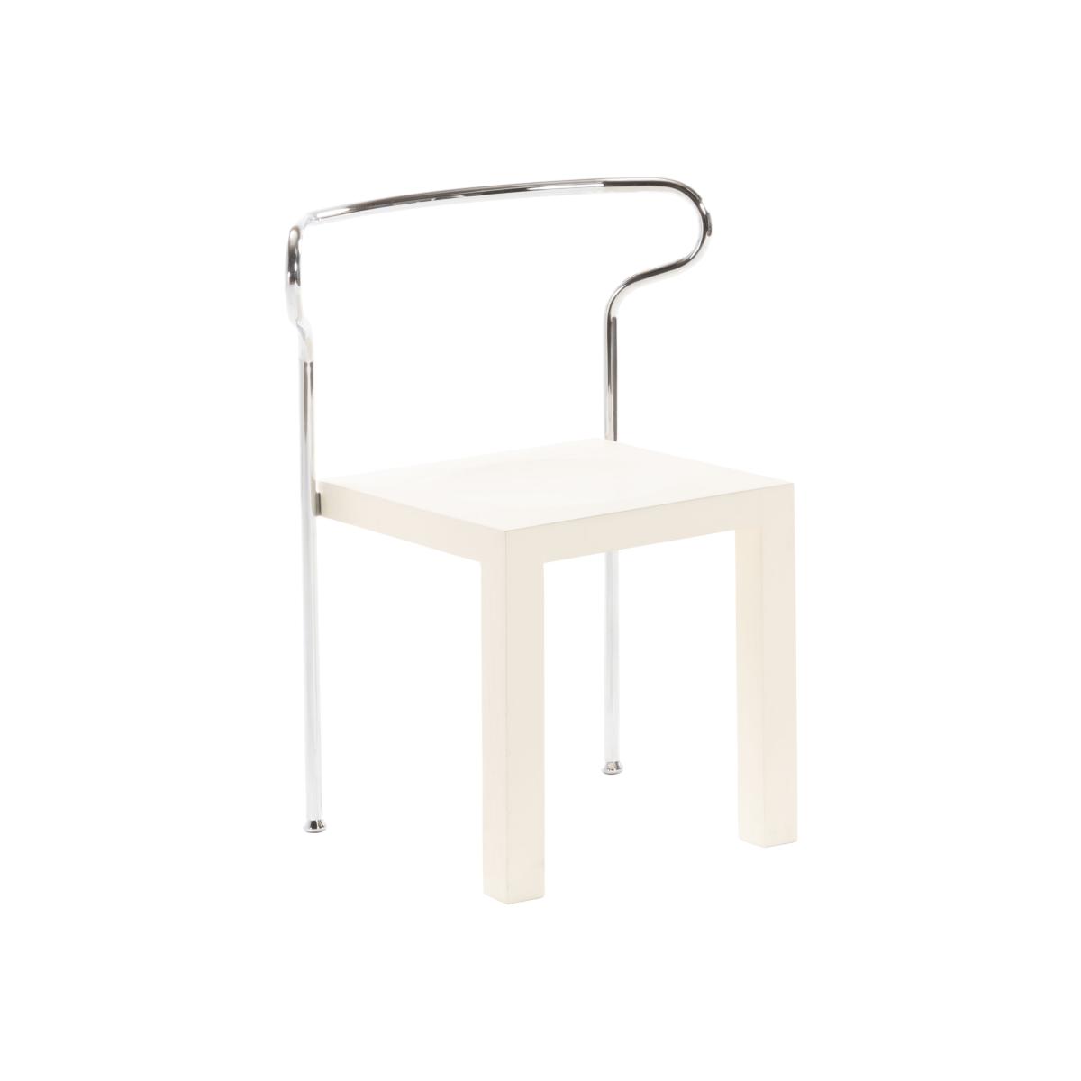 Avant-garde contemporary design... Young French artist Thomas Defour had fun blurring the lines by creating a chair with a singular look, a collision of styles and materials. The Topless chair borrows from the fundamental playfulness and freedom of 80s design. The seat and front legs in coloured wood form a single unit with straight, strict, rigorous lines. The backrest and back legs are made of a thin curved steel tube – a recurring element of industrial design. This metal tube traces a curved, simple line in the air: anything visually superfluous is removed to leave only the aesthetic essence. The contrast is striking: while the wooden seat stands out visually, anchored to the ground and occupying space with its solid shapes, the ethereal backrest seems to disappear. From the meeting between these two elements with their different aesthetics, a hybrid silhouette is born, both familiar and strange. Combining industrial processes and artisanal know-how, the Topless chair is entirely made in France. Thomas Defour: “This era is very inspiring for our generation. It’s a period during which manufacturers followed the radical ideas of young designers. This resulted in more desirable objects, not just functional ones. It’s this way of producing unusual but rational forms that drives me. '' Halfway between sculpture and craftsmanship, Thomas Defour's technique has developed in a fusion of two methods, visual and applied, based around solar influences. French designer 13. Desserts approaches design from a radical perspective, seeking balance between artistic freedom, mass production and "collectability". Giving pride of place to experimentation, this emerging design label explores new production avenues combining industrial processes and artisanal know-how. Uninhibited by the codes and trends that govern the market, the young guard of French design expresses itself freely, offering a selection of radically unique pieces.