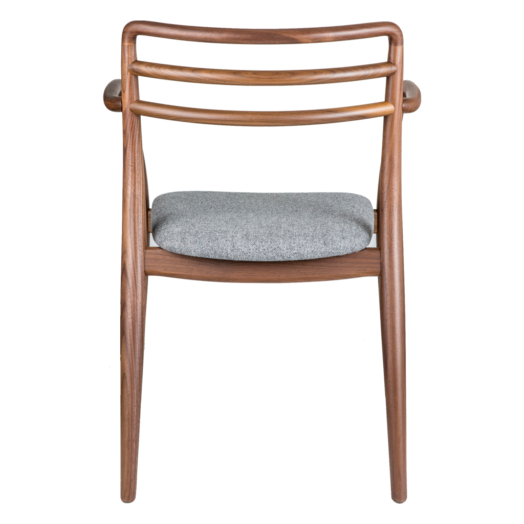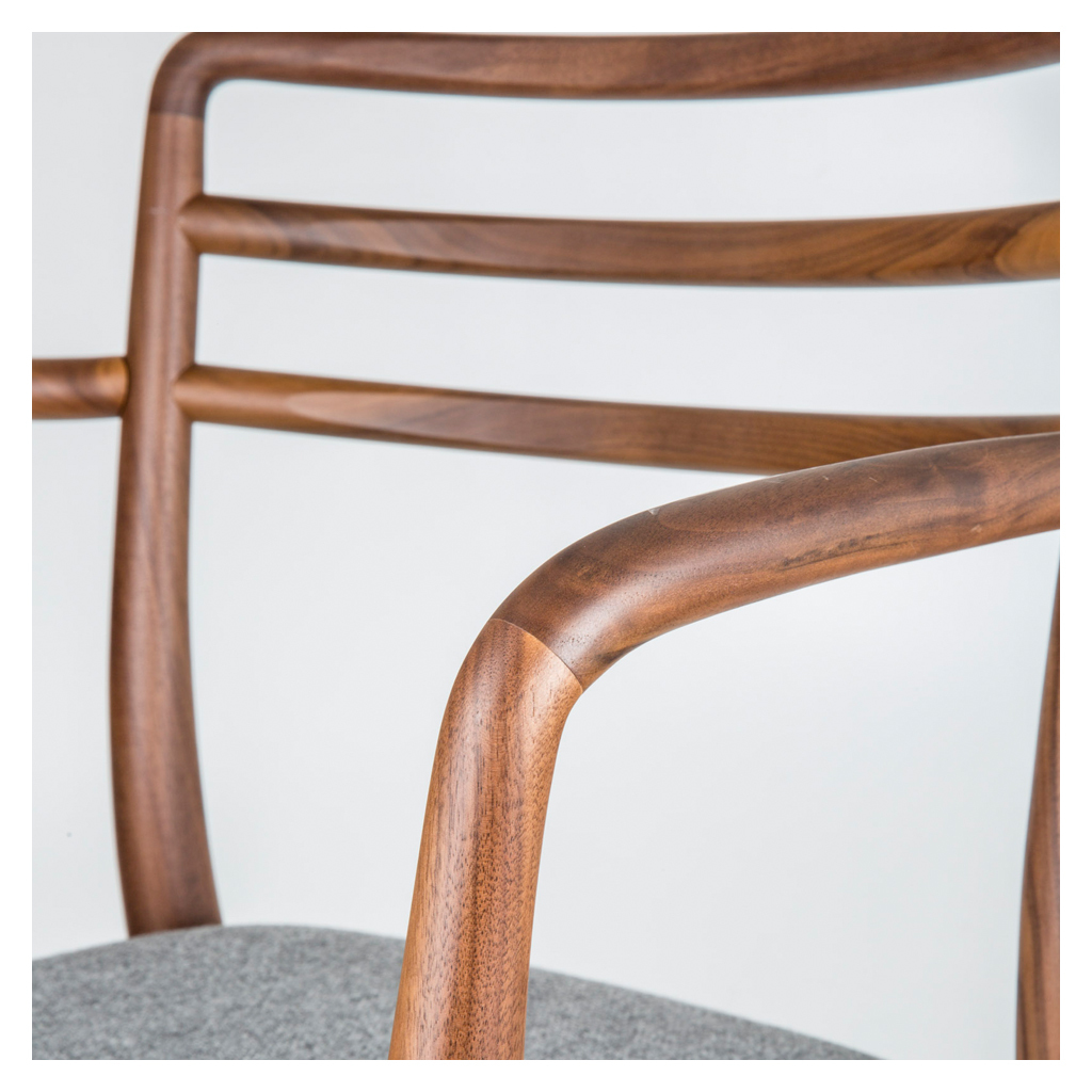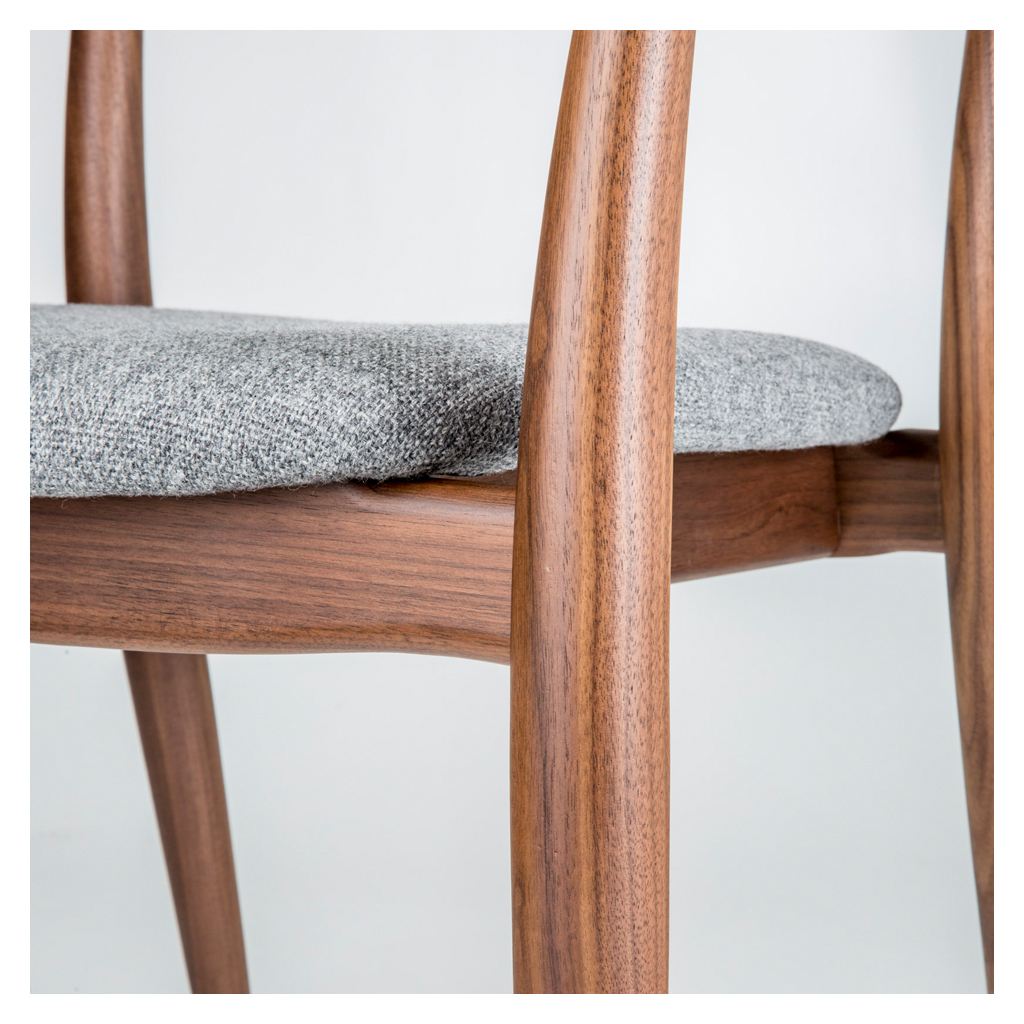 Exclusive to The Conran Shop, the clean-lined Tor Arm Chair was designed by David Irwin for Dare Studios and is crafted by skilled artisans. The Tor Side Chair is formed from pure, subtly fluid lines of natural walnut wood, with a seat upholstered in rich slate grey wool fabric. The seat's back features two horizontal struts for additional support, while the ergonomic arms subtly blend into the legs, formed from the same line of wood. Dare Studio is an award-winning British design studio, founded by Sean Dare in 2009. Dare champions fine craftsmanship, setting the benchmark for the best of contemporary British design and furniture production. A comfortable yet sophisticated statement, the unique Tor Arm Chair by David Irwin would make the perfect enhancement for a contemporary dining space.