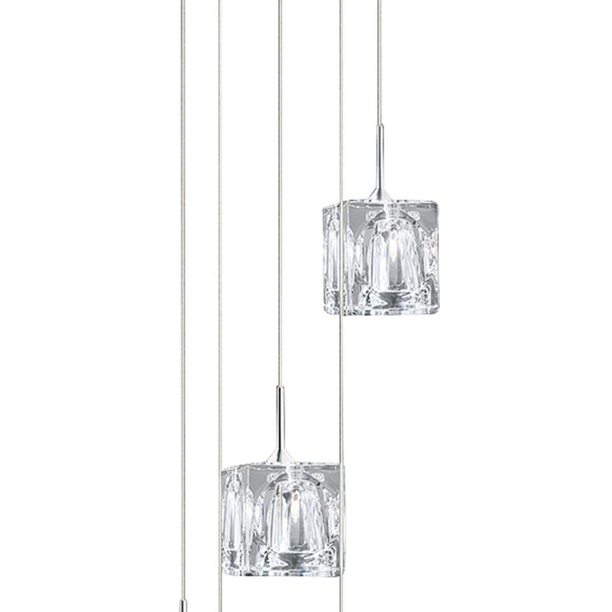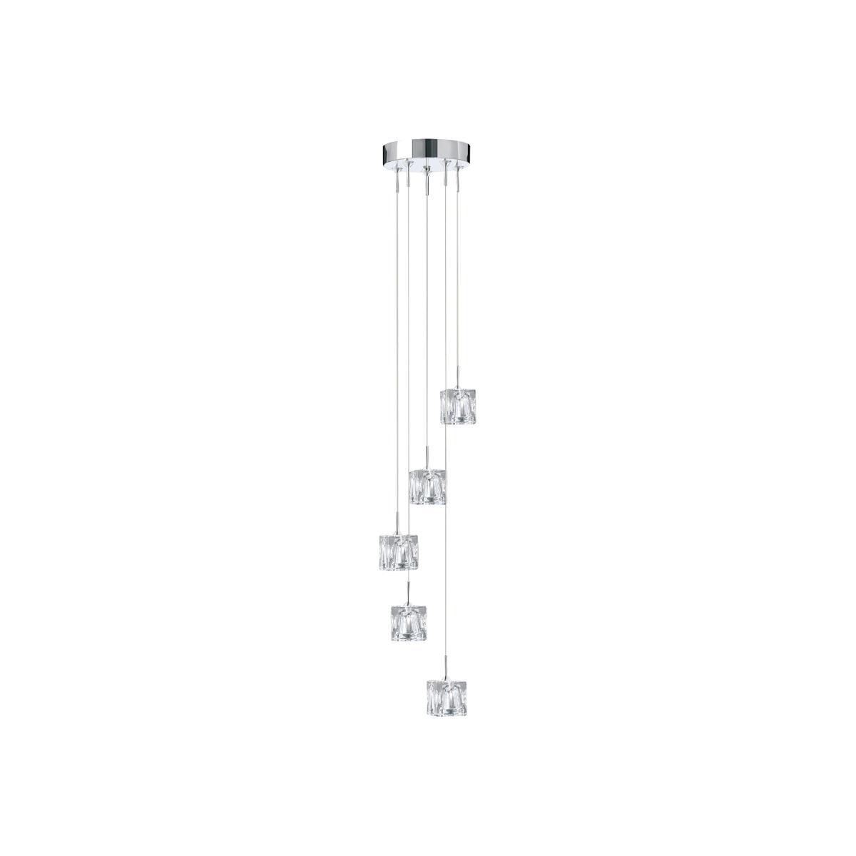 Turn heads with this stunning 5 light multi-drop fitting. The clear glass shades are cube shaped, also including a chrome chain and base. Decorate your hallways, above stairs ceiling with this attractive item. LED's use up to 75% less energy and last up to 20 times longer than incandescent bulbs.