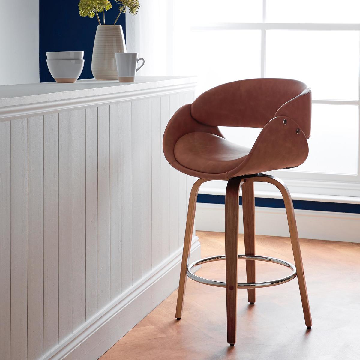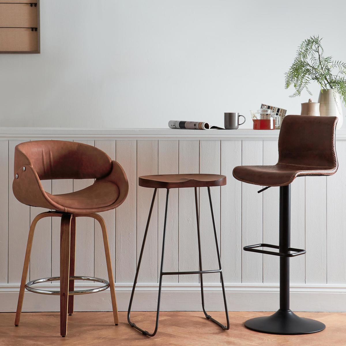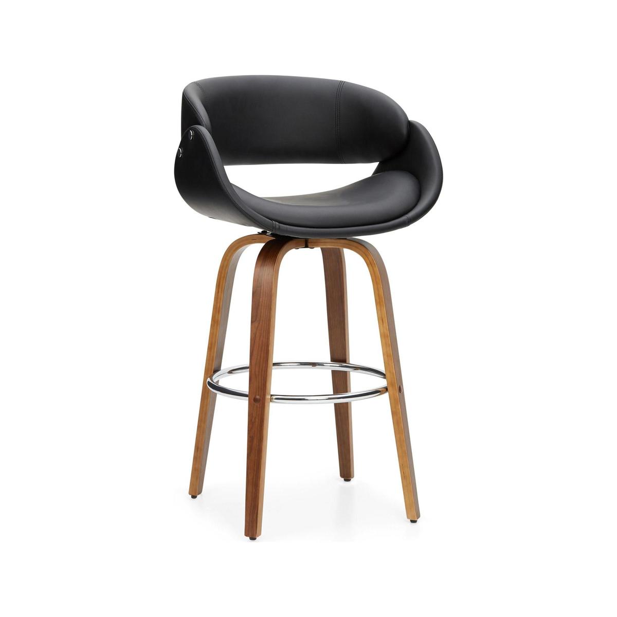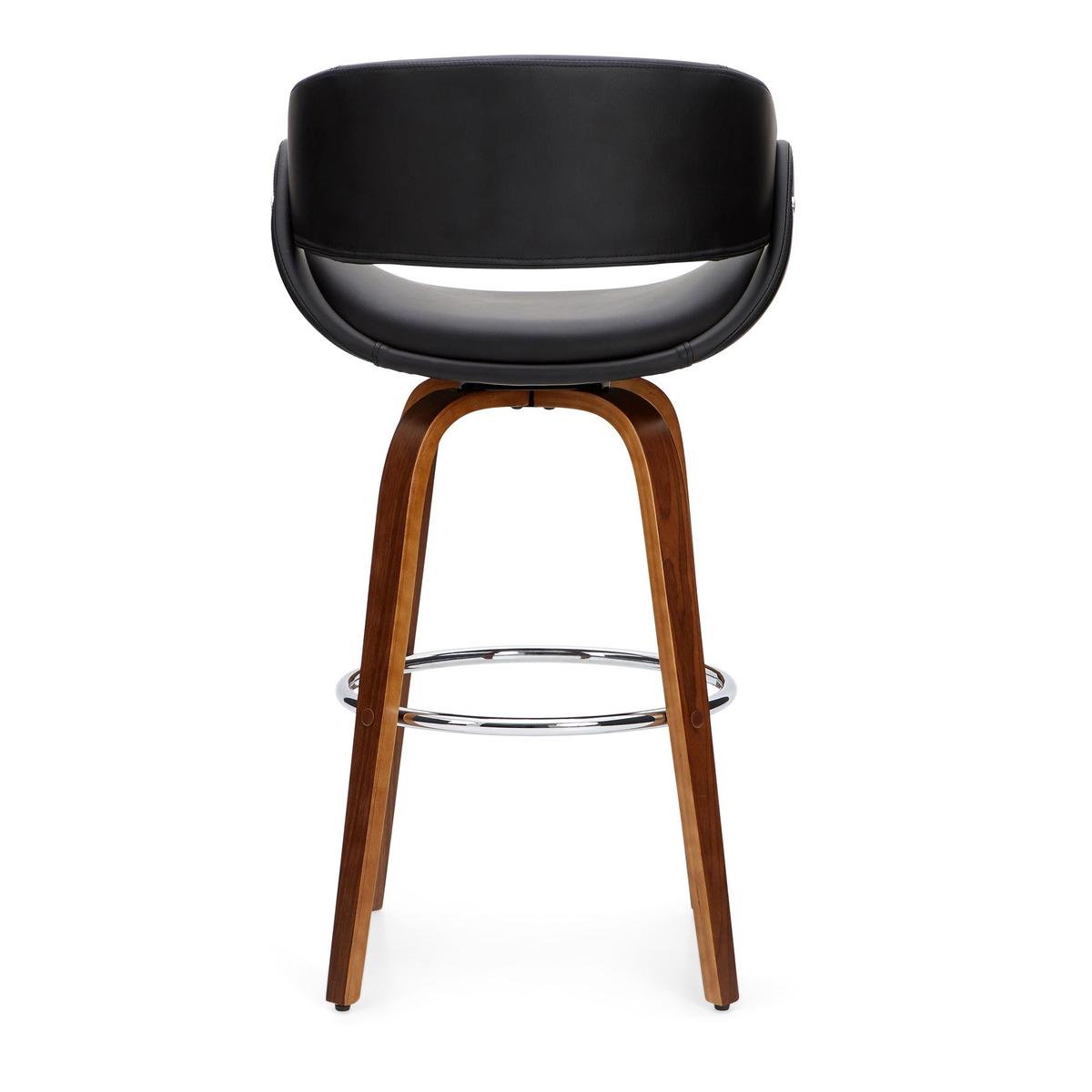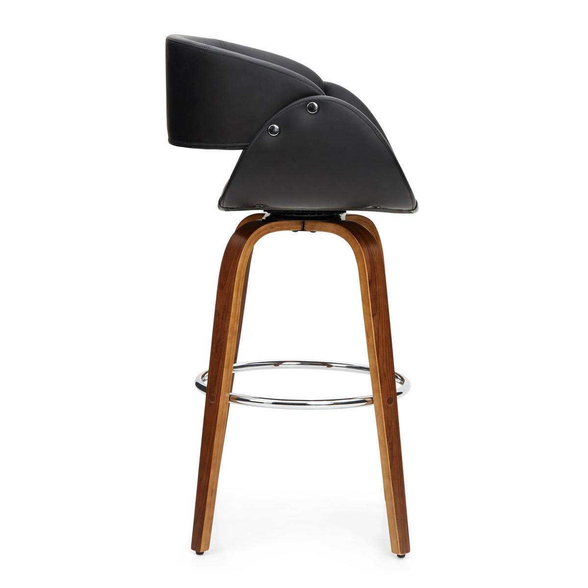 Designed to work for standard UK kitchen height, this stylish self-assembly bar stool features a black colourway with 360-degree swivel. Fashioned with a foam padded seat and curved back, this bar chair is crafted with a bentwood frame structure and metal foot rest.\n\nSeat Height 66cm\n\nSeat Width 47cm\n\nSeat Depth 46cm\n\nPlease Note: This product and any of its fabrics have been manufactured for domestic use only.