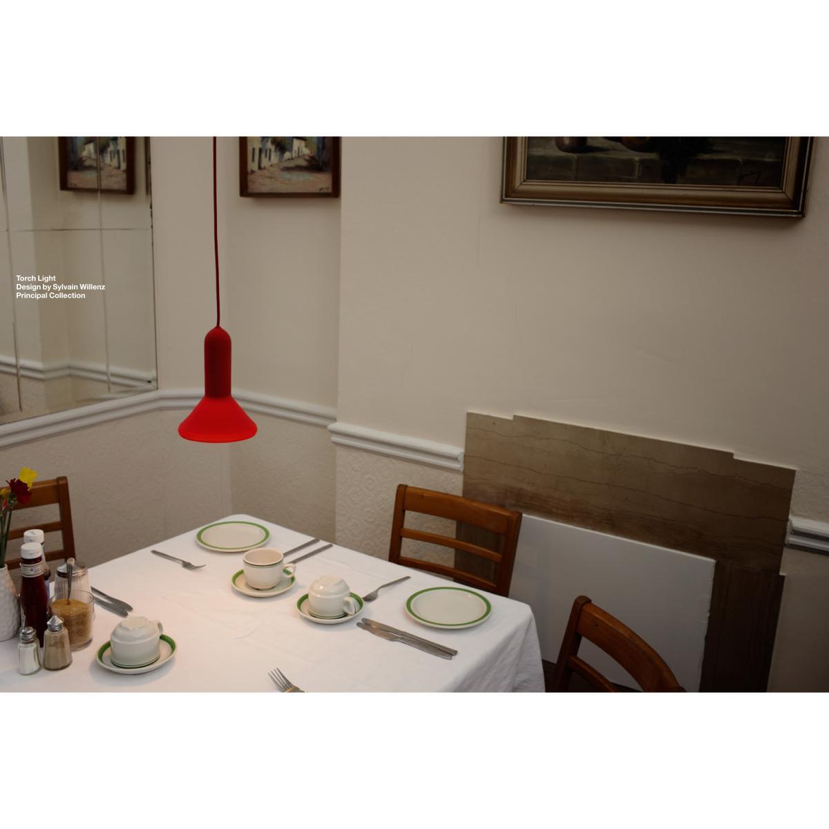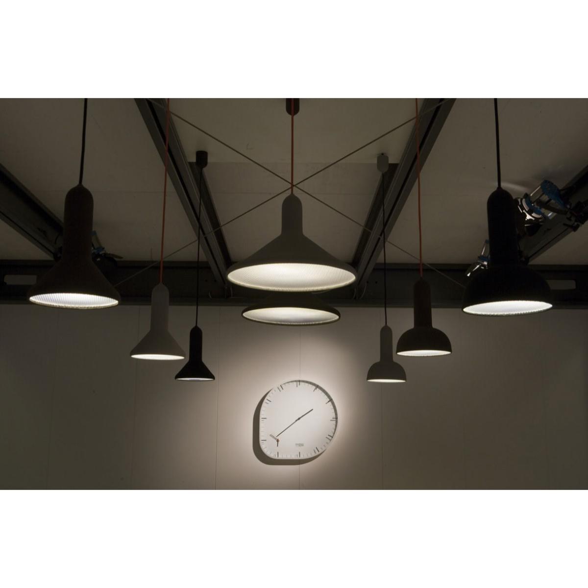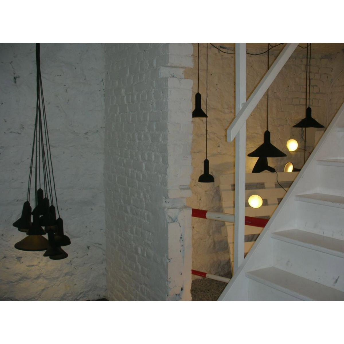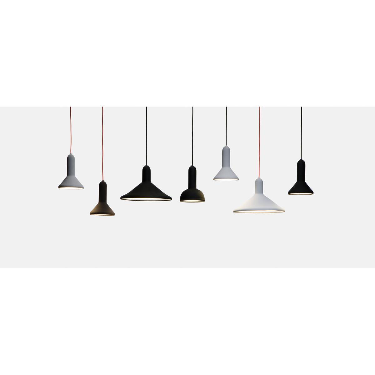 Made from a moulded textured plastic, the 'Torch Light' comes in three versions: the small cone, the small rounded and the large cone. All sizes can be suspended from the ceiling in single units, arranged in bunches of 10 or 20, or used singularly on a tabletop or in the corner of a room. 'Torch Light', like much of Sylvain's work, is inspired by archetypal objects - in this case, the simple silhouette of a typical hand-held torch or car headlight. 'Torch Light' is offered in three different colours, including black. «This is how I like to think of objects. What would they be like as shadows? How can they be normal and recognisable, yet slightly sophisticated and elegant? It's playful, graphic. Like an icon. » Sylvain Willenz.