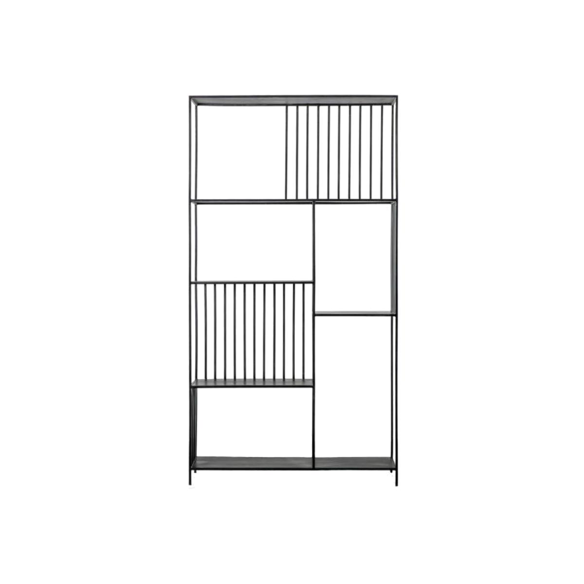 Eye-catching contemporary designed open display unit. Crafted from metal with a matt black finish, it features slatted design detailing to create this stunning look. Material: Iron. Colour/Finish: Black.