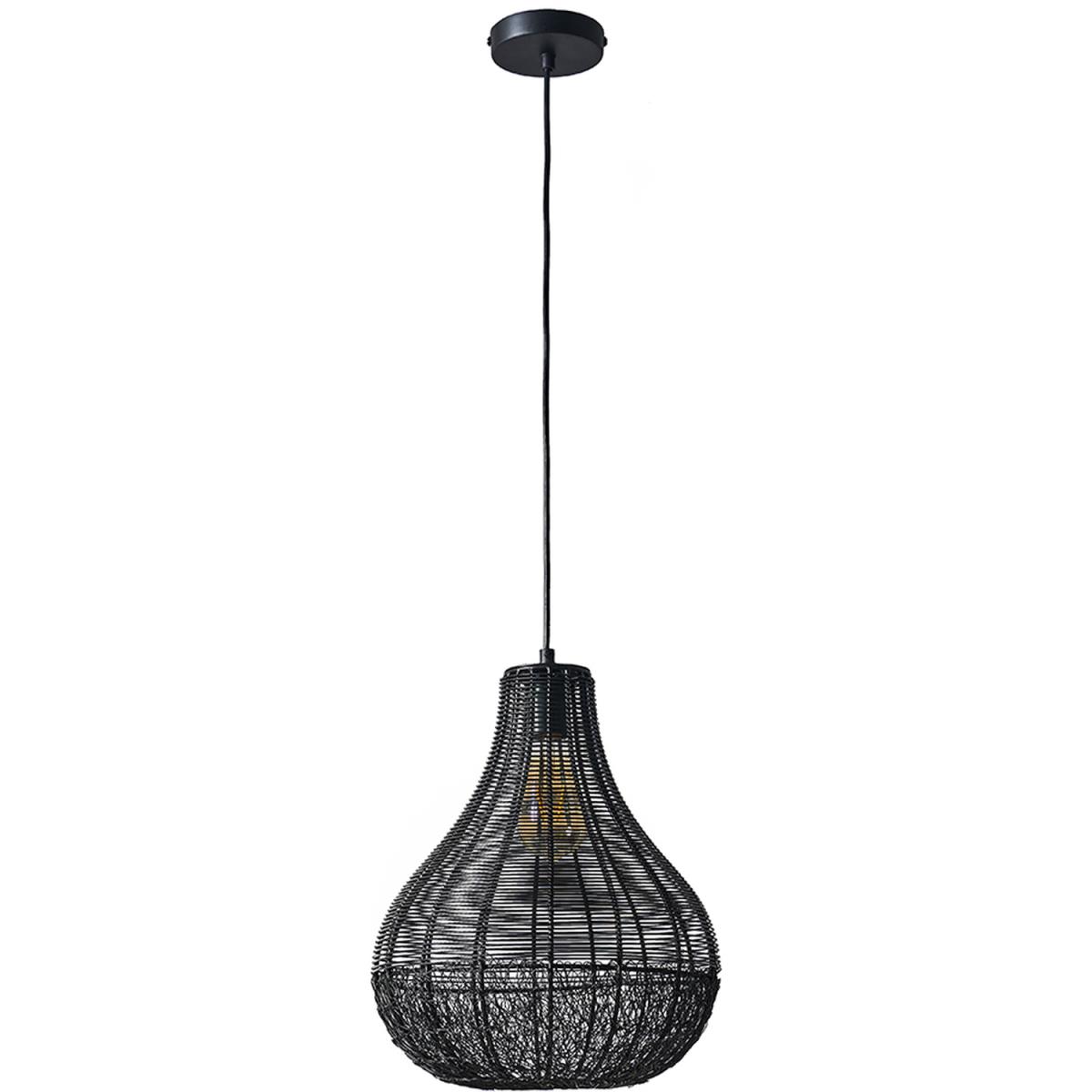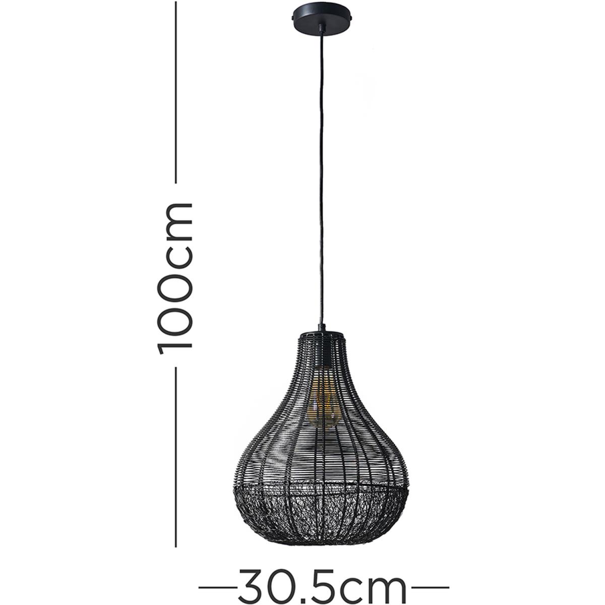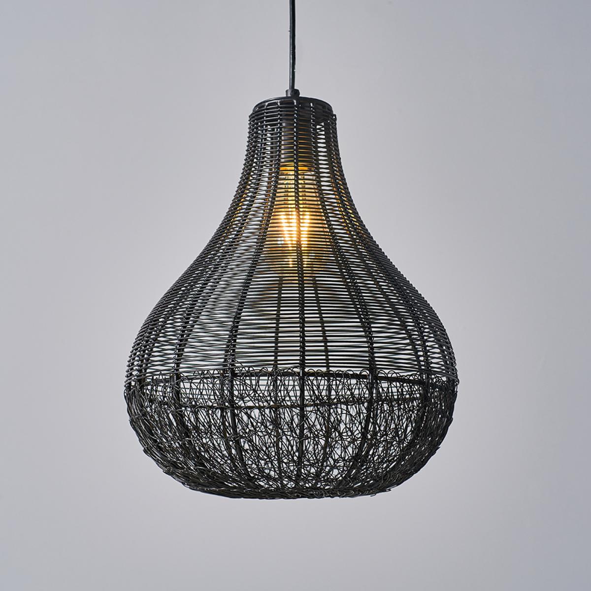 Tread softly between Industrial lighting and Boho home decor with the Torin black wire basket weave ceiling light. Woven into a beautiful teardrop shape the eye is drawn down to the tablescape the pendant hangs over. We love a low-hanging statement pendant to bring focus to a room, be it a dining or living room space. The matt black metallic finish of the weightless-looking basket weave gives weight and luxe appeal to this beautiful wire pendant. Requires one 10W ESE27 LED bulb or halogenincandescent equivalent.