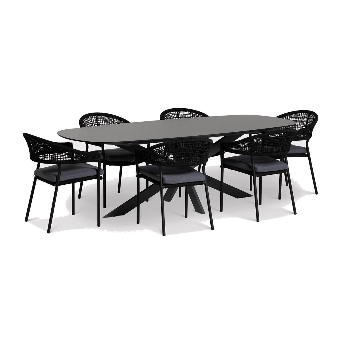 Enhance your garden with the stylish Torino Garden Dining Set, effortlessly blending into any outdoor setting. Crafted with a ceramic glass tabletop, the table exudes a simplistic yet modern design, creating a beautiful focal point. The set is completed with 6 stunning Torino Dining Chairs in a luxurious anthracite hue, seamlessly complementing the sleek ceramic table. Perfect for summer dining, this ensemble offers a chic and inviting space to enjoy outdoor moments with family and friends.