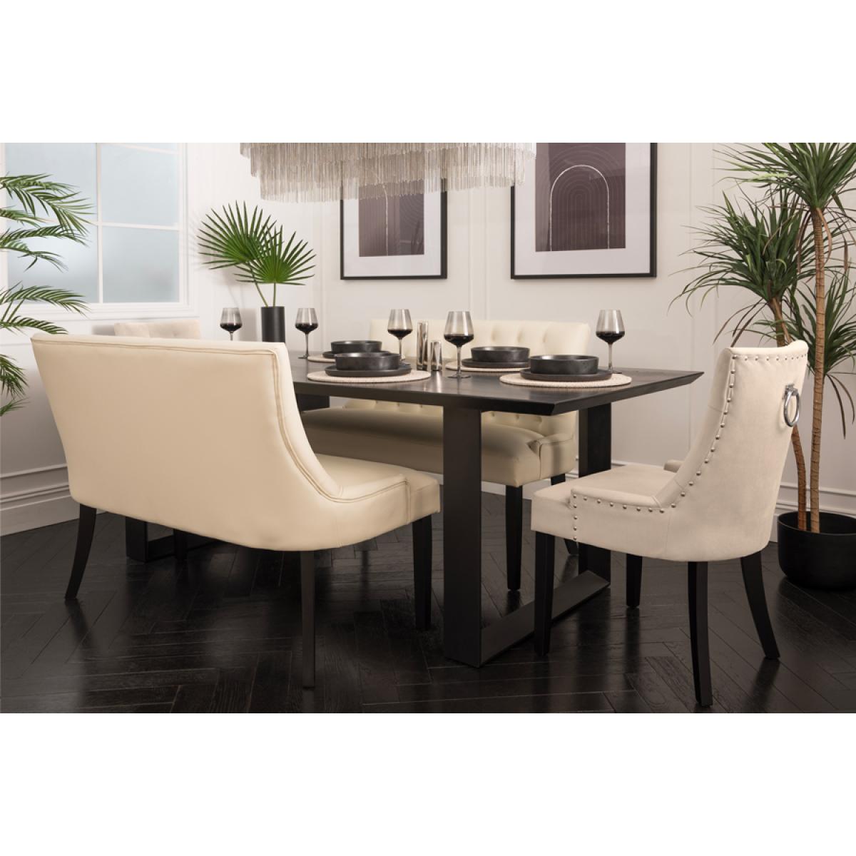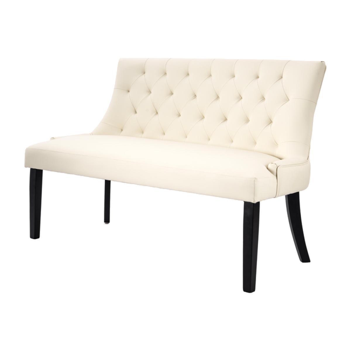 Based on our bestselling Torino dining chairs. Use as a dining bench or in a hallway, bedroom or dressing room. Solid ash legs with black stain. Deep buttoned faux leather upholstery. Seats up to three people. Part assembly required, approximately 5 minutes.