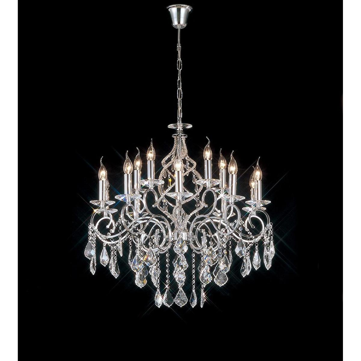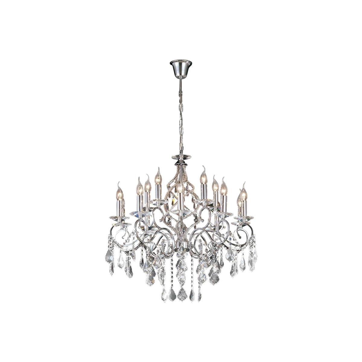 Torino Chandelier 15 Light Polished Chrome, Crystal - Polished Chrome