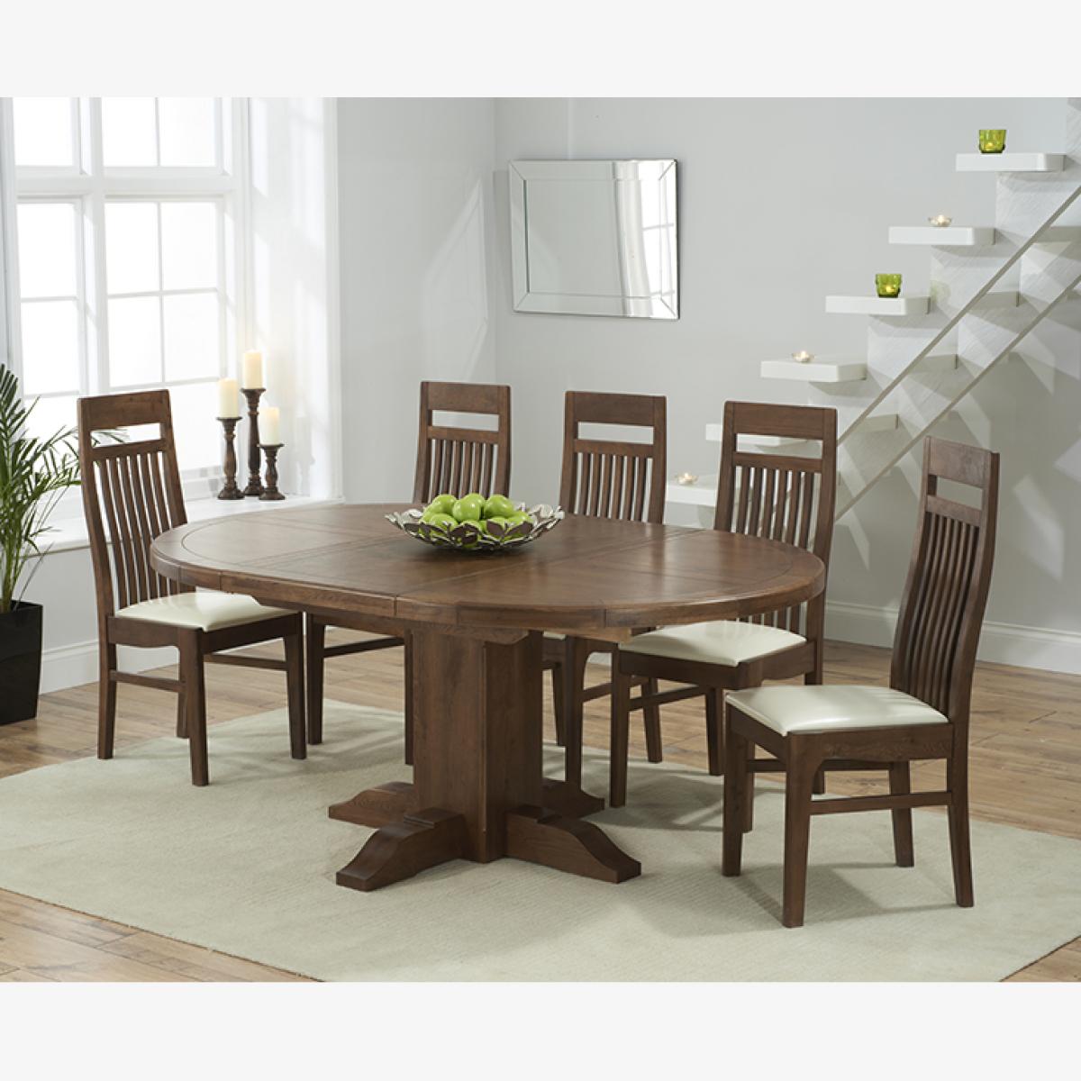 This table is a great choice for those looking to create a warm, classic dining area. The dark solid oak finish offers versatility, pairing well with both traditional and contemporary interiors, especially if you’re aiming for a cosy, natural feel. I love how it extends, providing extra space when needed-ideal for family gatherings or dinner parties. Pair it with neutral or patterned tableware and add some textured textiles to soften the look. The brown Monaco chairs add a touch of elegance without overpowering the space, making this set suitable for both formal and casual settings. To keep things balanced, consider light-toned walls or accessories to contrast with the dark wood for a more airy feel, or layer with richer colours and textiles for a more luxe vibe.