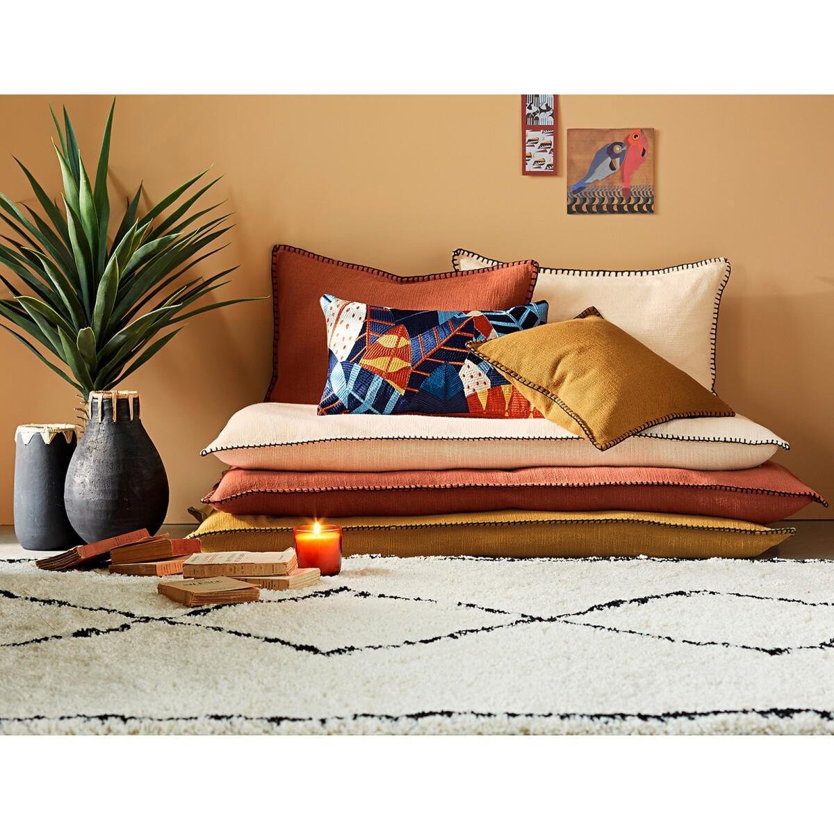Inspired by folk embroidery, this cushion cover with an abstract leaf pattern will bring a bohemian touch to your interior.. An exclusive design by La Redoute Interiors.