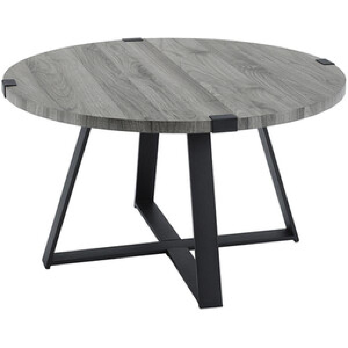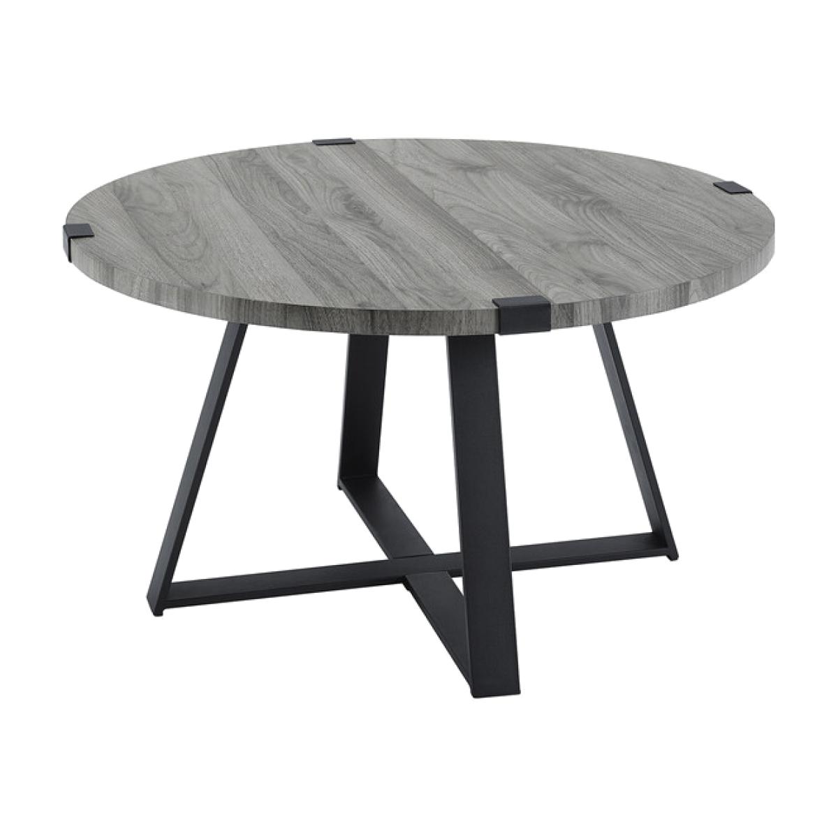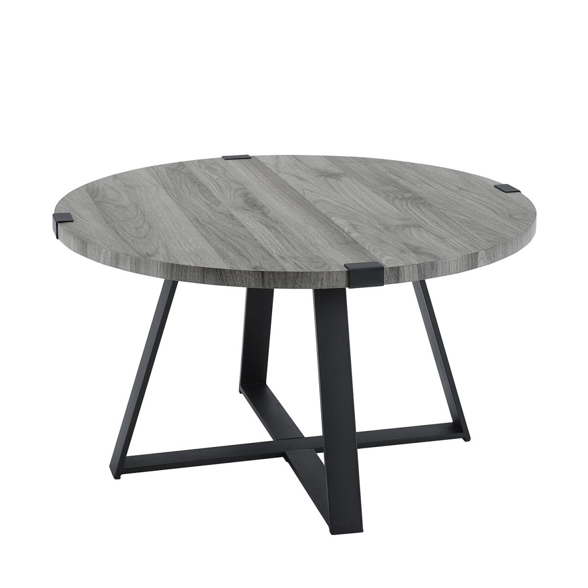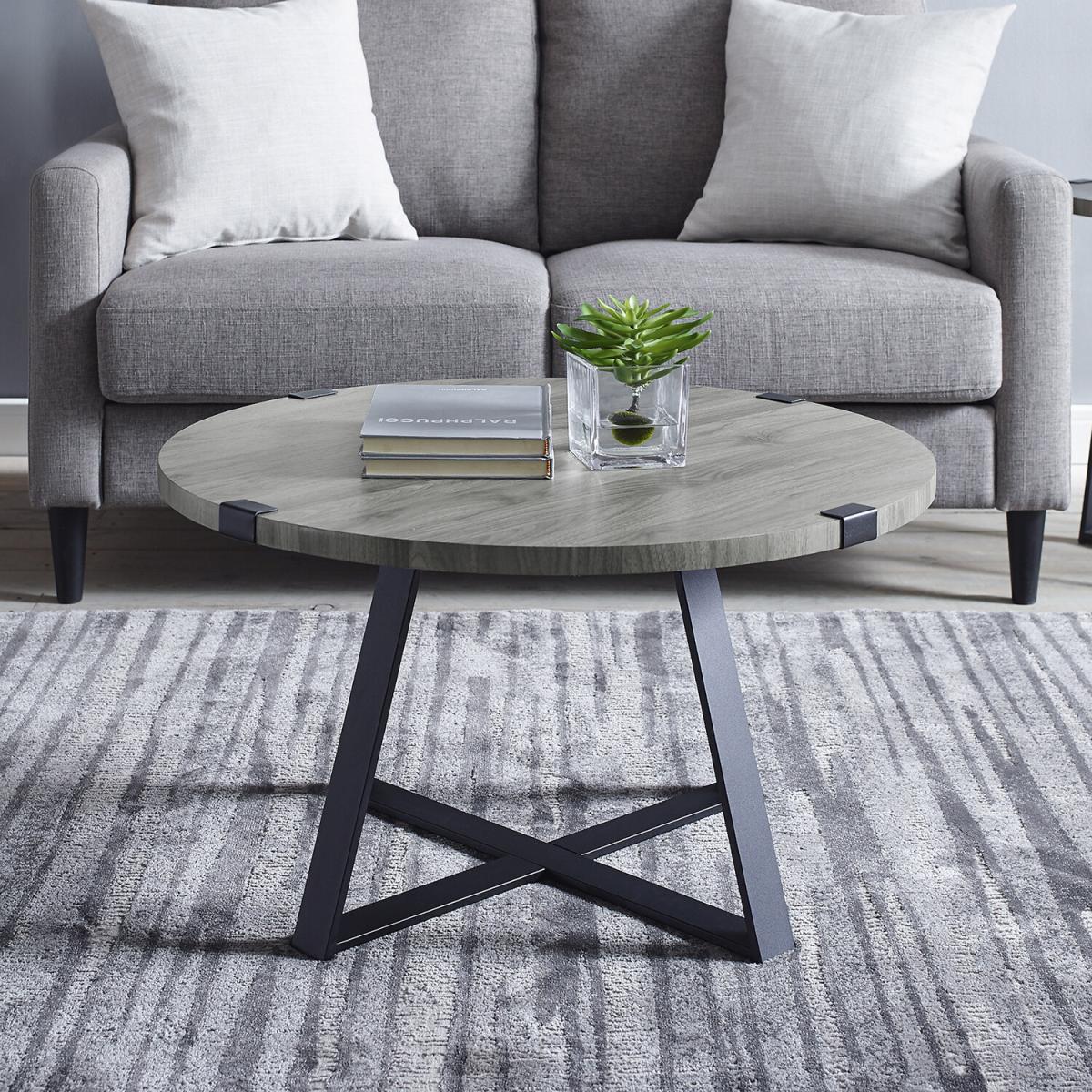 This round coffee table is easy to circle about, whether you’re playing a game with some friends or arranging furniture next to it. Its open design keeps the piece unobtrusive and gives you and your guests a great place to kick back and stretch out around. It’s ideal for small spaces and the combination of painted black metal and durable laminate fit in well with a variety of styles ranging from Urban Industrial to Scandinavian.