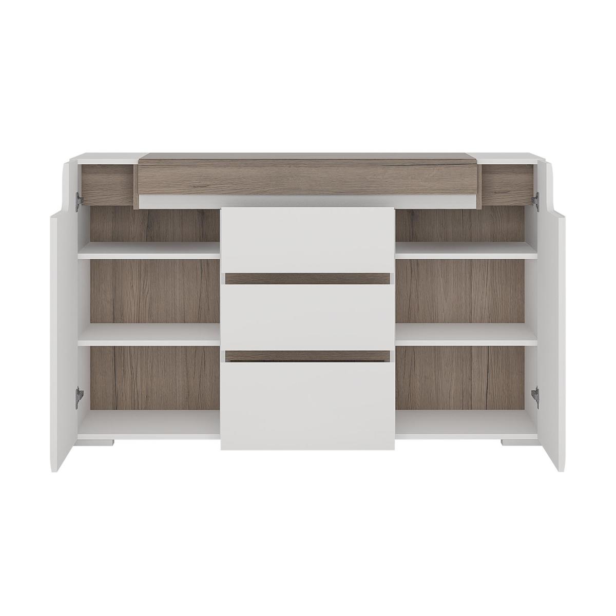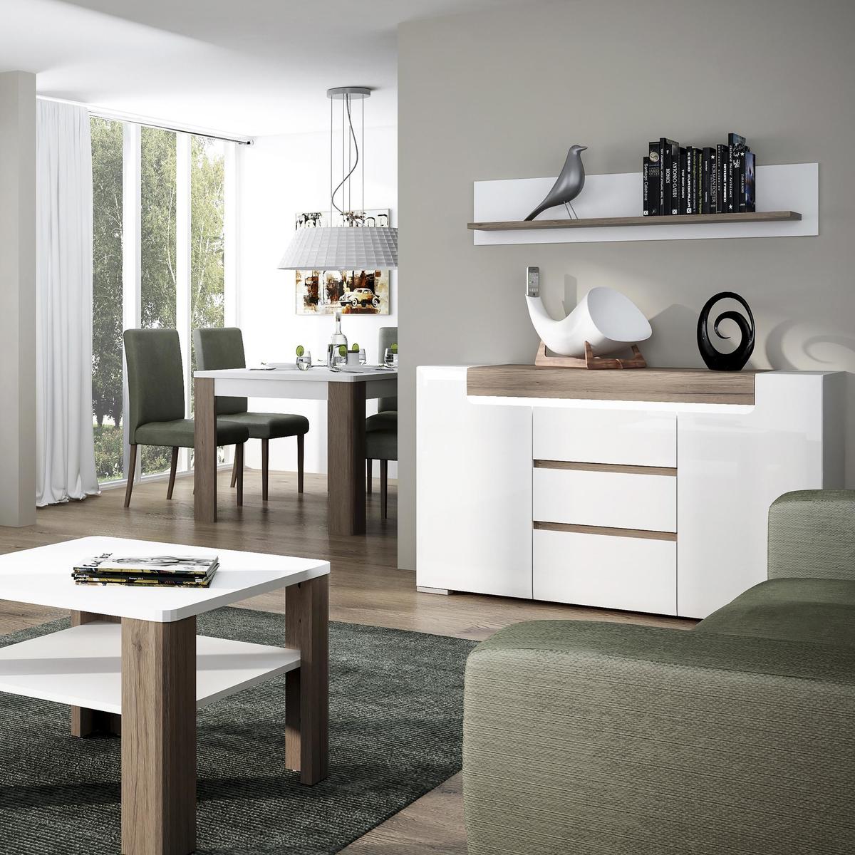 The Toronto Collection boasts a modern high gloss finish mixed with San Remo Oak for the perfect contrast and a well rounded look. The Toronto has many features including hidden LED lighting with soft close doors and drawers and easy to clean heat and scratch resistant surface making this range both practical and stylish. Please note, unfortunately we cannot deliver this item to the Channel Islands.