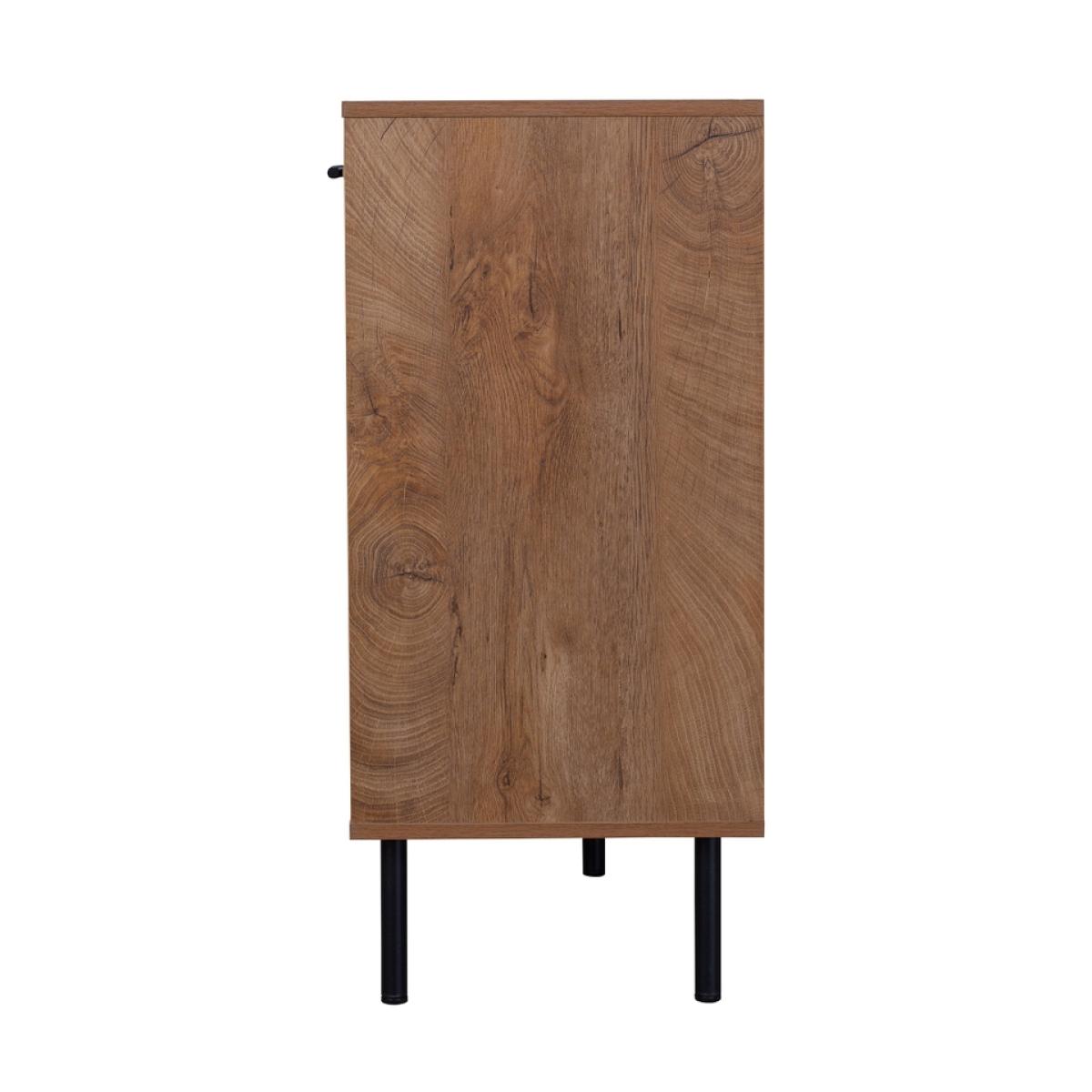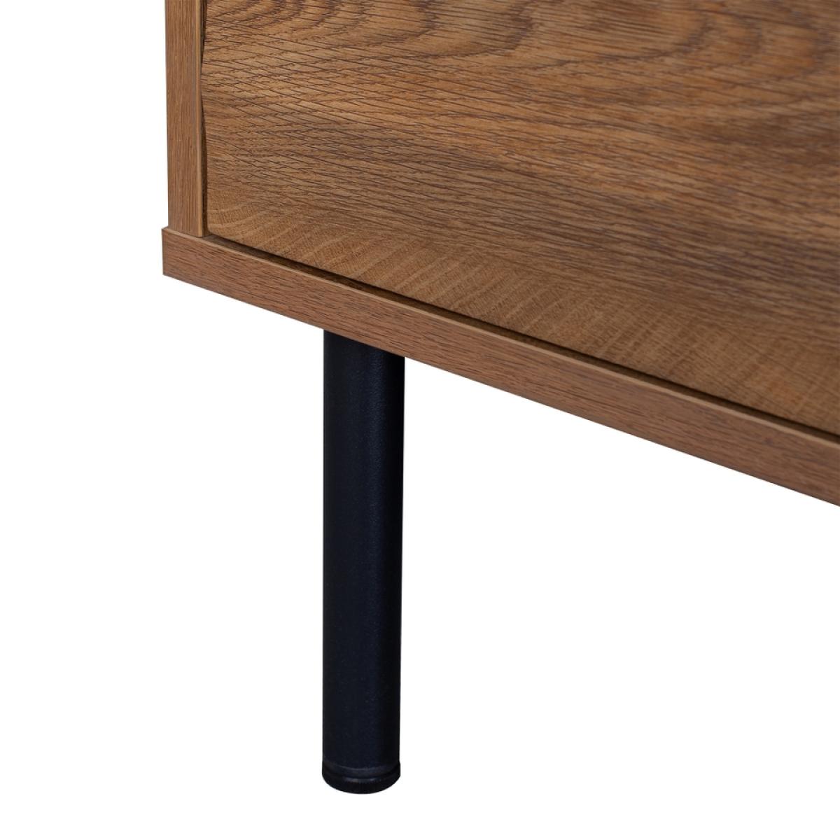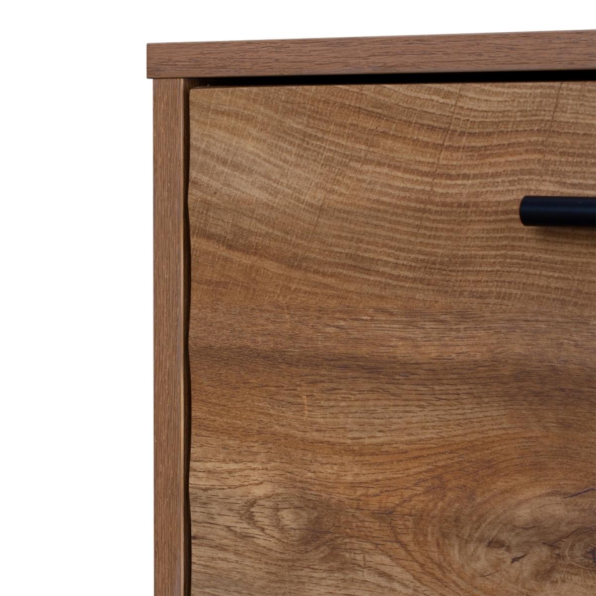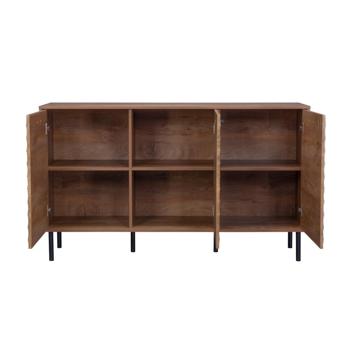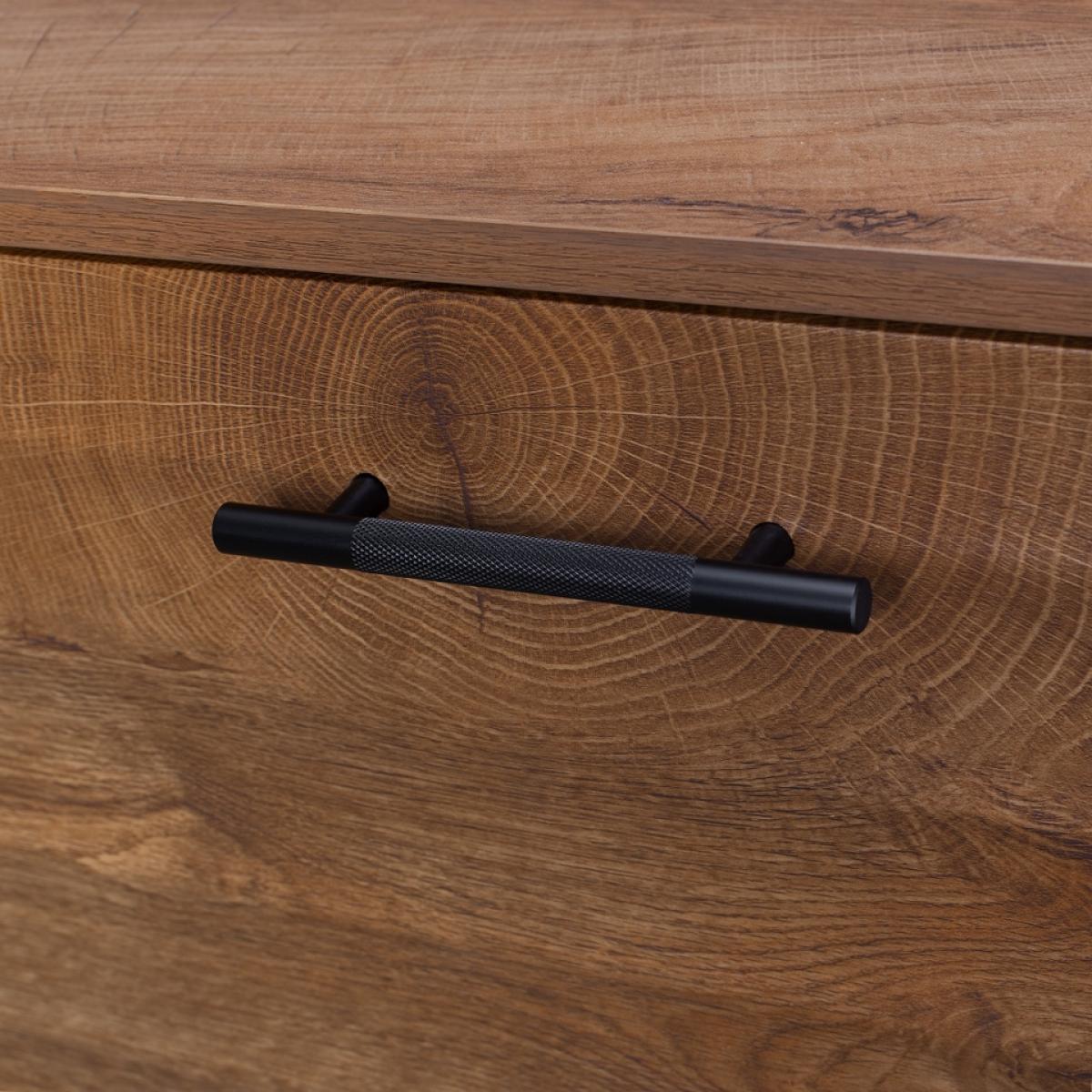 The Toronto wide sideboard is a real tactile treat! The horizontally fluted door fronts give this cabinet a fluid shape while the knurled black metal handles and black metal legs give it an industrial edge. The dark wood grain effect finish give Toronto its sophisticated feel and subtly adds depth and texture to your space. The three fluted doors hide ample storage with internal shelves to help you keep your home clutter free.