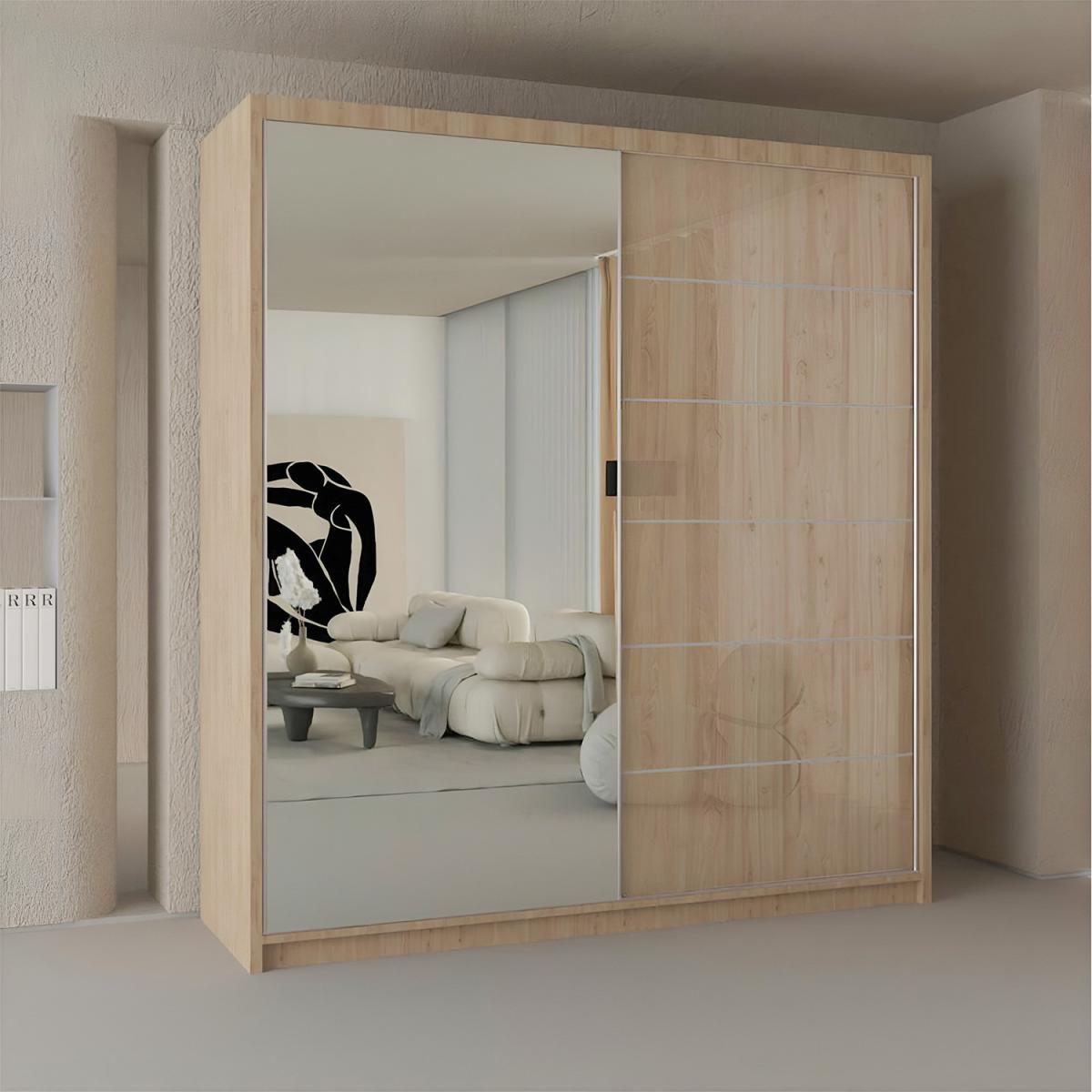 Bring refined elegance and functionality into your space with the Torren Double Door Sliding Wardrobe. Designed with a premium high gloss finish, this wardrobe offers a modern luxury aesthetic that instantly elevates any bedroom. The full-length mirror adds depth and convenience, making your room feel brighter and more spacious. Available in four timeless colours - White, Black, Grey, and Oak and three versatile sizes, Torren is crafted to fit seamlessly in any interior. With a thoughtfully designed interior layout featuring shelves and a hanging rail, this wardrobe provides ample storage for your clothes, shoes, and accessories. Built to last, it offers both style and practicality, making it the perfect addition to any home.