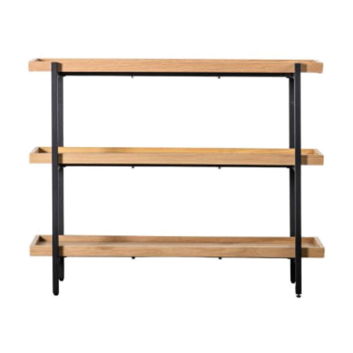 Modern display shelving with industrial accents Assembly required This contemporary open display unit is the perfect way to show off your items, whether you're showcasing antiques or displaying your own collection. The sheles are tray style with oak veneer tops and solid oak surrounds. A matching wall unit is available so you can coordinate your interiors. Modern display shelving with industrial accents Assembly required This contemporary open display unit is the perfect way to show off your items, whether you're showcasing antiques or displaying your own collection. The sheles are tray style with oak veneer tops and solid oak surrounds. A matching wall unit is available so you can coordinate your interiors.