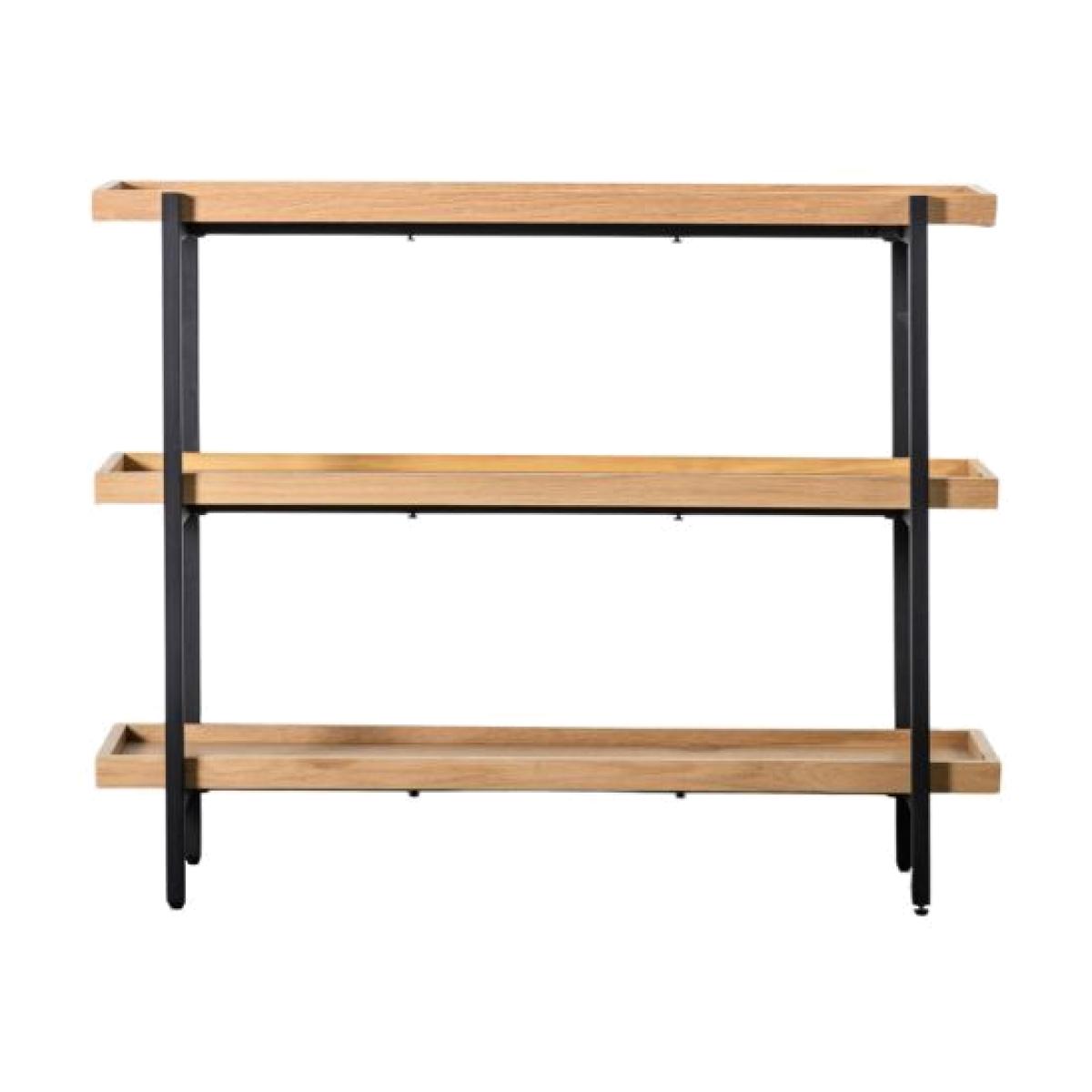 Offering a stunning contemporary look, this small open display unit combines matt black metal with oak. The shelves are tray-style with oak veneer tops and solid oak surrounds. Matching pieces are available. It is part of our Packed-Flat Design Project, offering easy delivery to any room in any property, whilst reducing the packaging needed. Easy assembly is required, but all the tools needed are supplied.