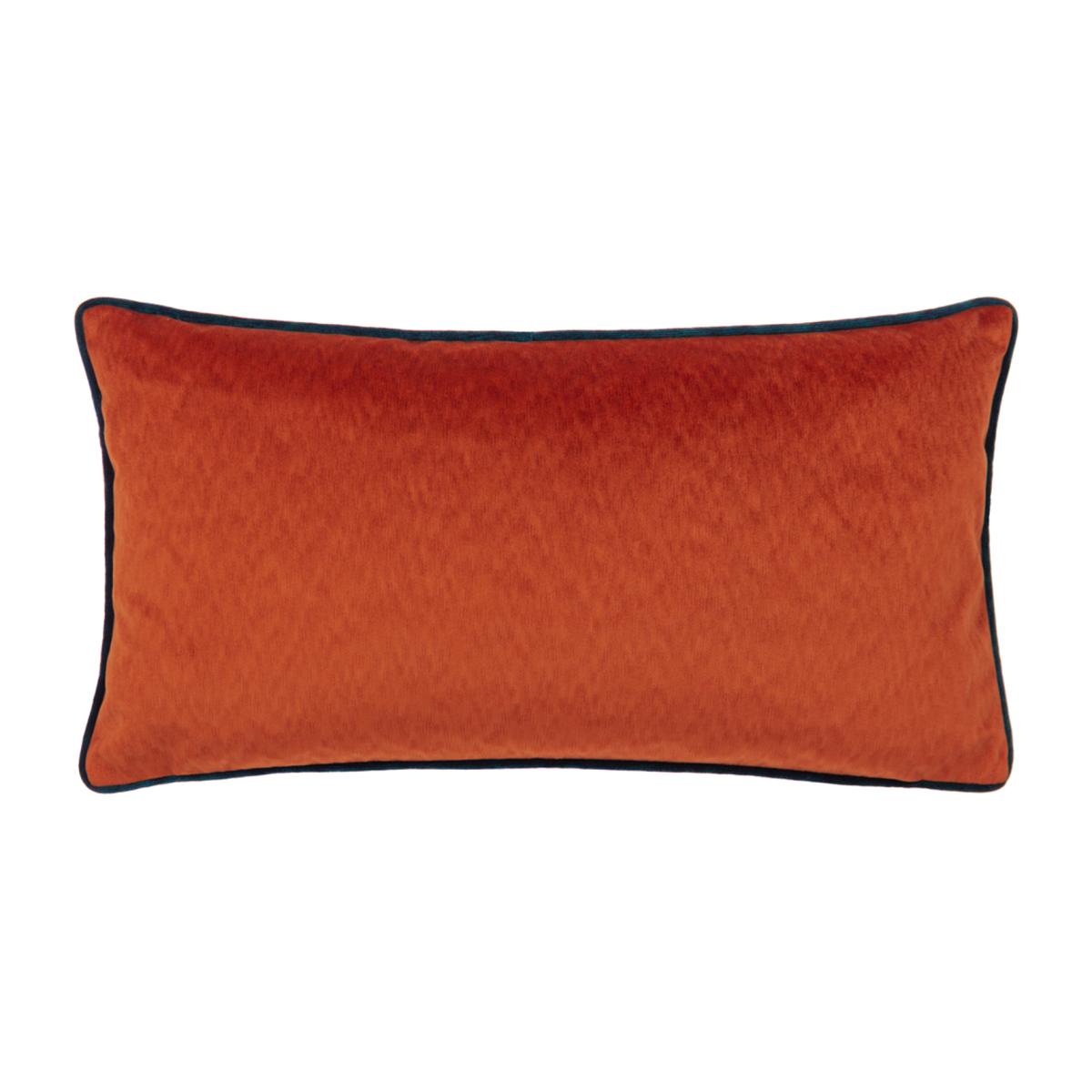 Torto Velvet Piped Trim Cushion - Brick-Teal / Feather