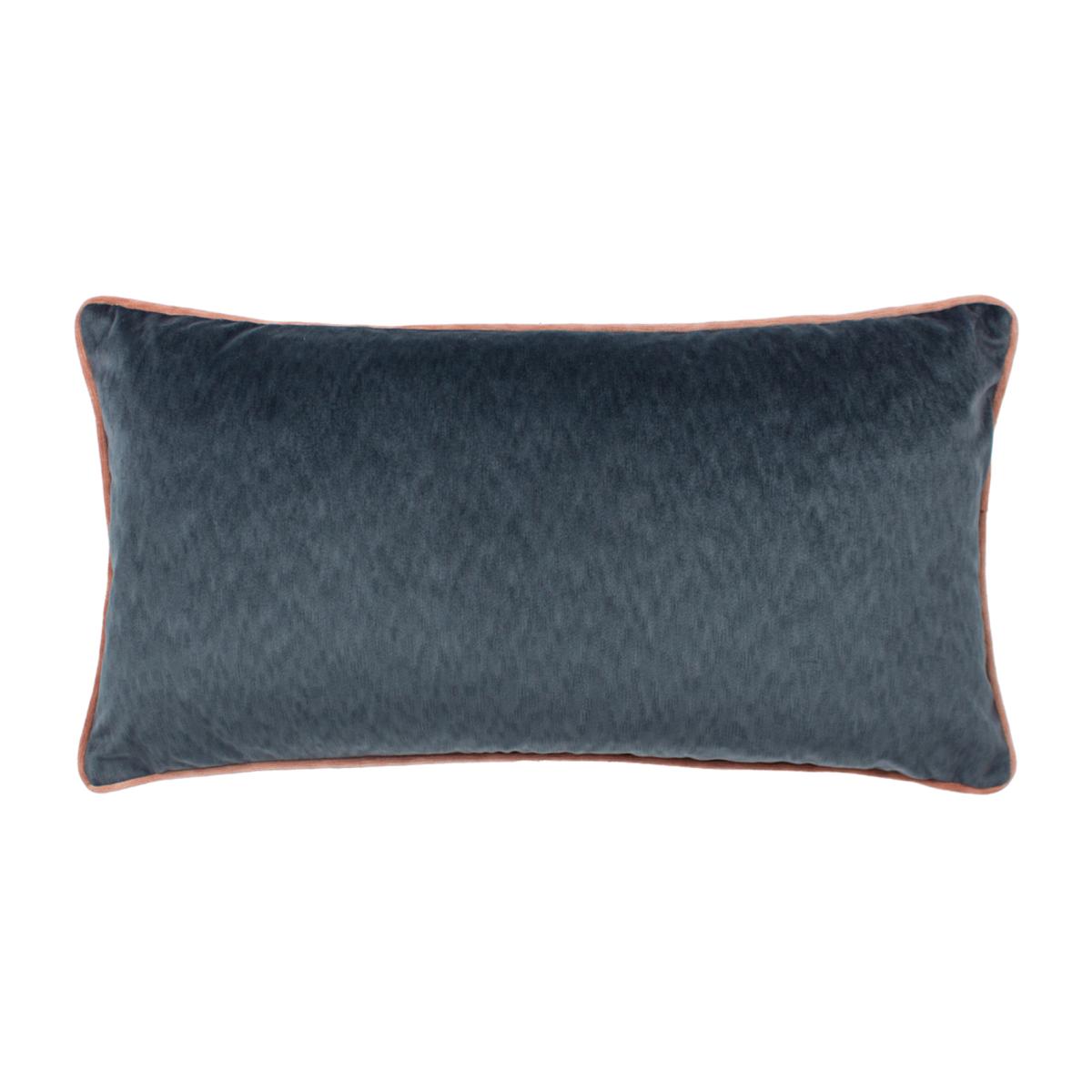 Torto Velvet Piped Trim Cushion - Slate Blue-Blush / Feather