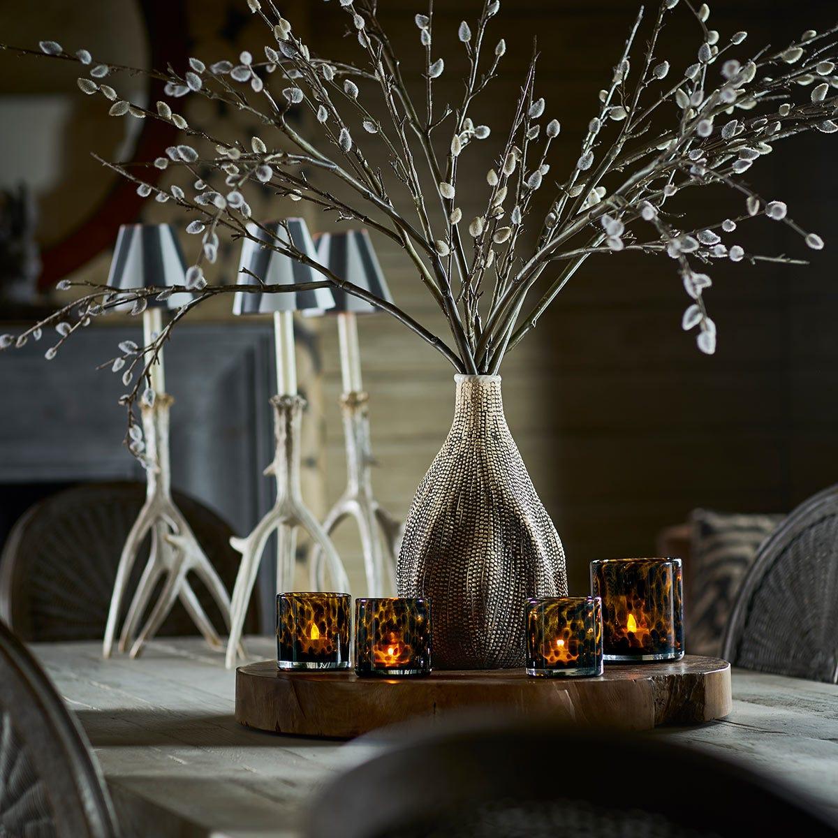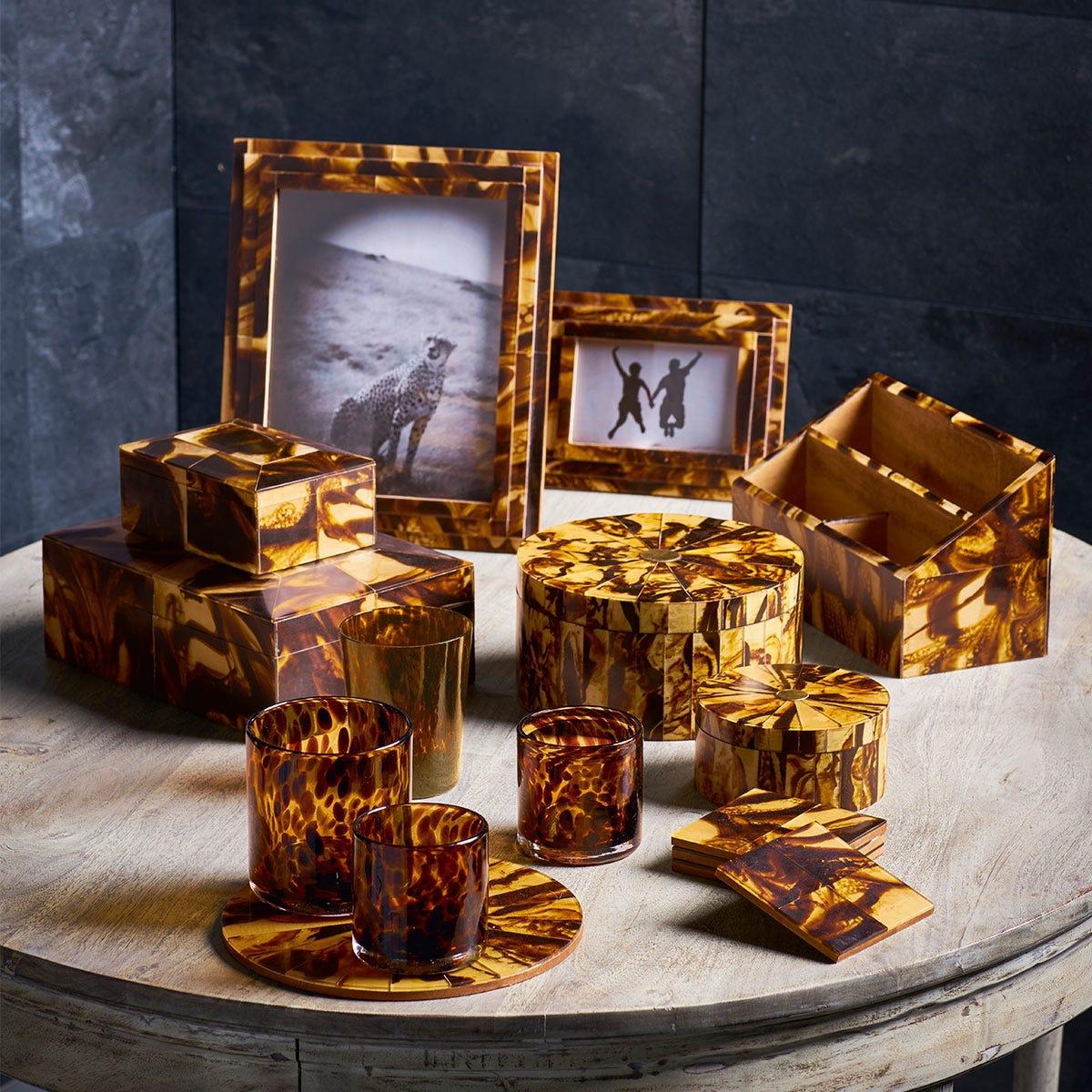 I love this tortoiseshell candle holder large - it’s a great statement piece that adds instant warmth and texture to a space. Its versatile pattern works well in both classic and contemporary interiors, particularly those with natural or neutral palettes, as it introduces a rich, organic feel. For practical styling, try grouping it with brass or matte black accents for contrast, or use it as a standalone piece on a sideboard or coffee table for maximum impact. It also works beautifully in a layered vignette with other decorative objects or framed photos, making it a flexible piece that elevates the overall aesthetic.