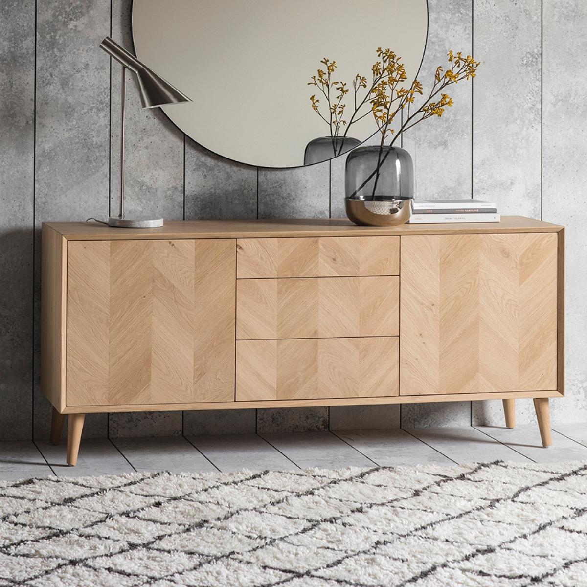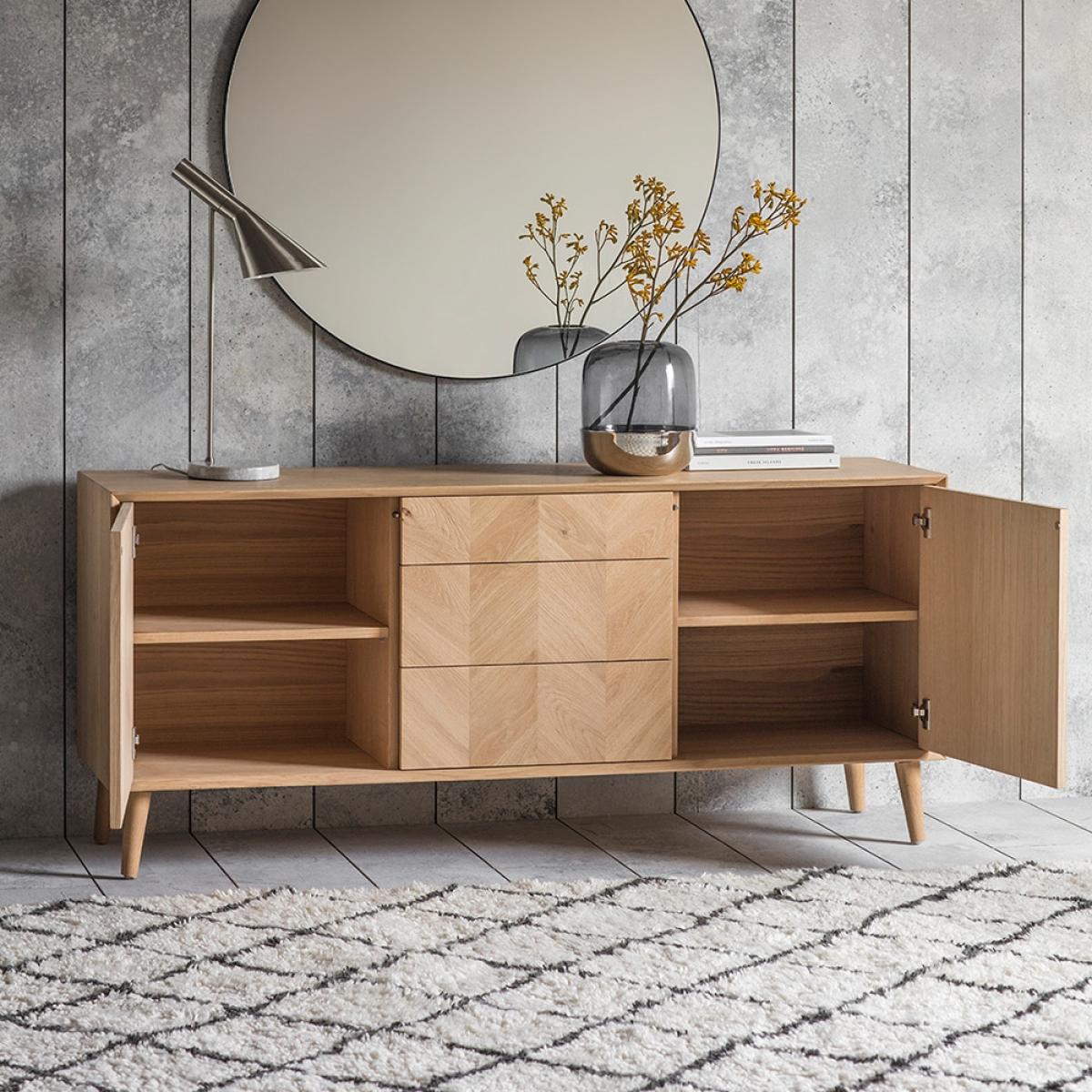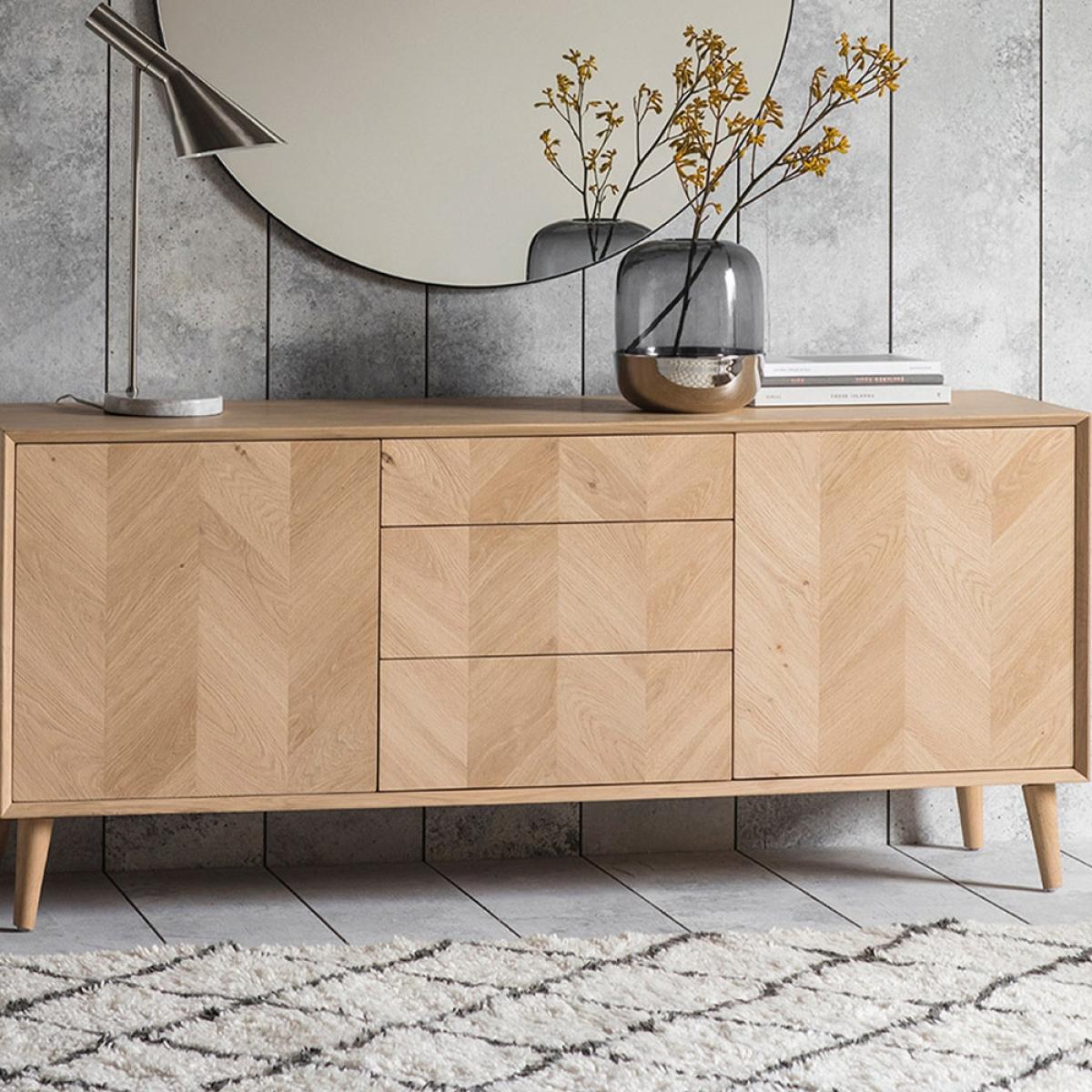 Oh hey there thing of beauty! The eye catching Tortona2 Door 3 Drawer Sideboard is an essential piece of furniture for any self worthy Interior lover. Just like it's extended Tortonafamily, it's made from European Oak and structured veneers showing the beautiful natural grains and knots of this wood, whilst the specialist matte laquer, gives a tactile and contemporary finish to this Gorgeous design. Style in a hall way as a storage console, or take pride of place in your living room decorated with your favourite succulents. Wherever you choose to place the Tortona Sideboard, it's sure to look Bellissimo!.
