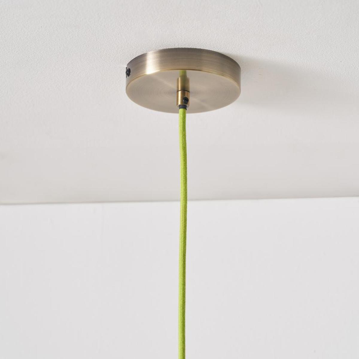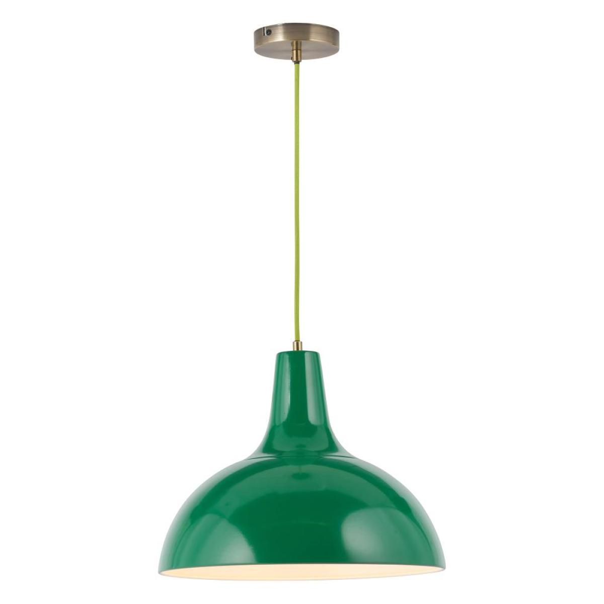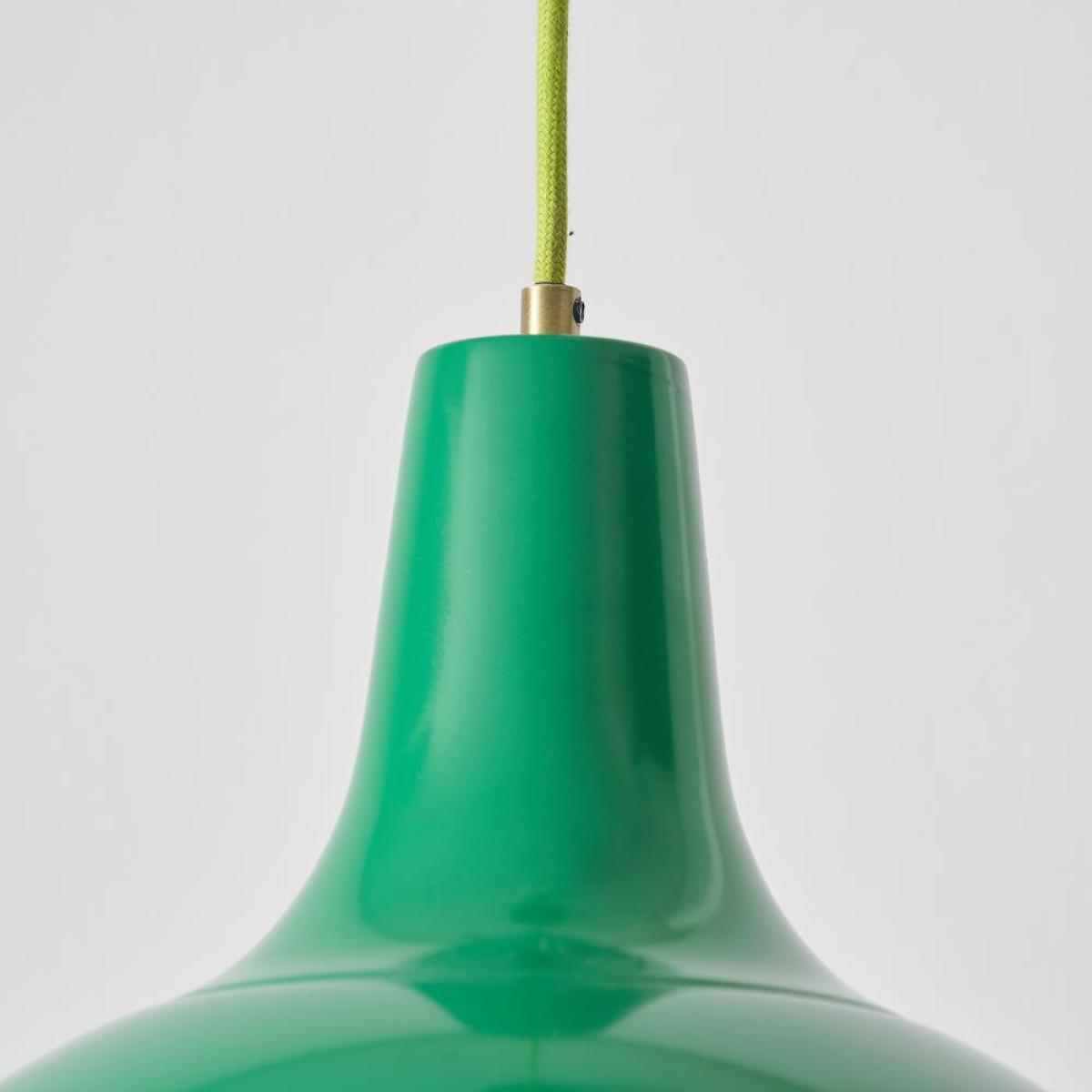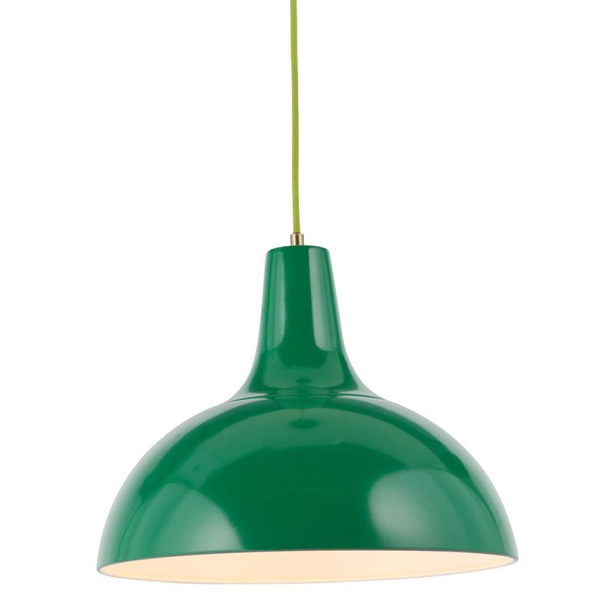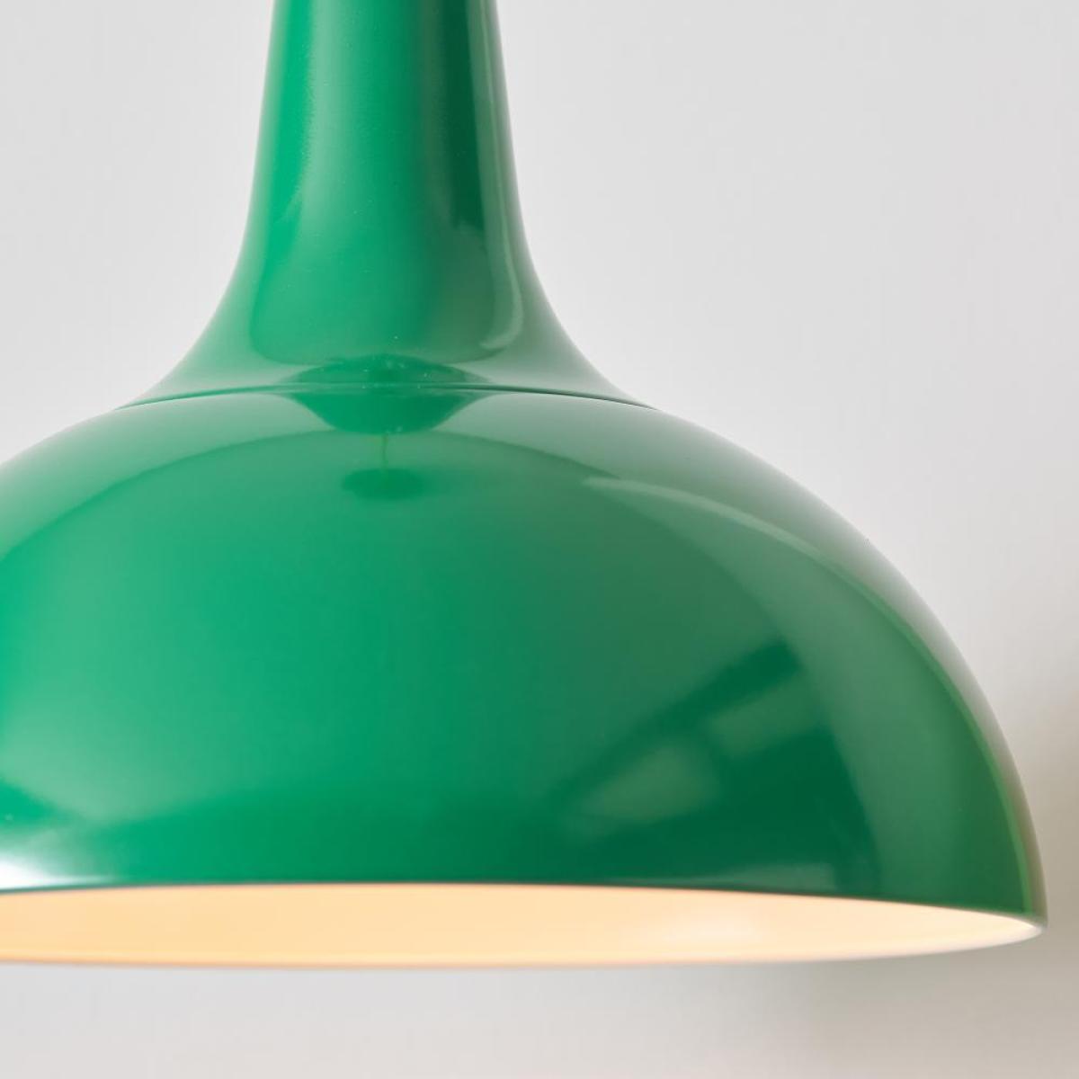 Make a statement on your ceiling with this striking , produced in collaboration with Designers Guild to sit with their iconic colour palettes. The classic design of the industrial lighting is reimagined in this stunning dome metal pendant light. Finished in emerald green with a contrasting pop of citrus green fabric flex. Will make a vibrant statement in any room in the home.