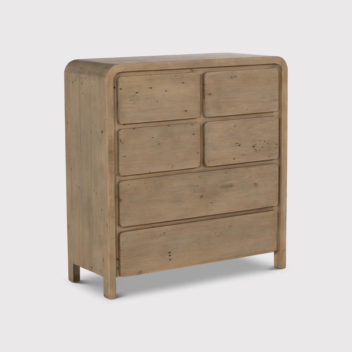 I love this tall-boy because of its versatile, natural wood finish which works beautifully in both contemporary and rustic interiors. It’s an excellent choice for bedrooms or even larger living spaces where extra storage is needed without compromising on style. The six drawers offer practical organisation, perfect for keeping clutter out of sight. For styling tips, consider pairing it with neutral-toned or textured accessories to enhance its natural appeal, and place a few decorative items or a small lamp on top for a lived-in yet organised look. Its understated design makes it flexible enough to blend into various colour schemes and interior styles, making it a reliable functional piece that adds warmth and character to a room.