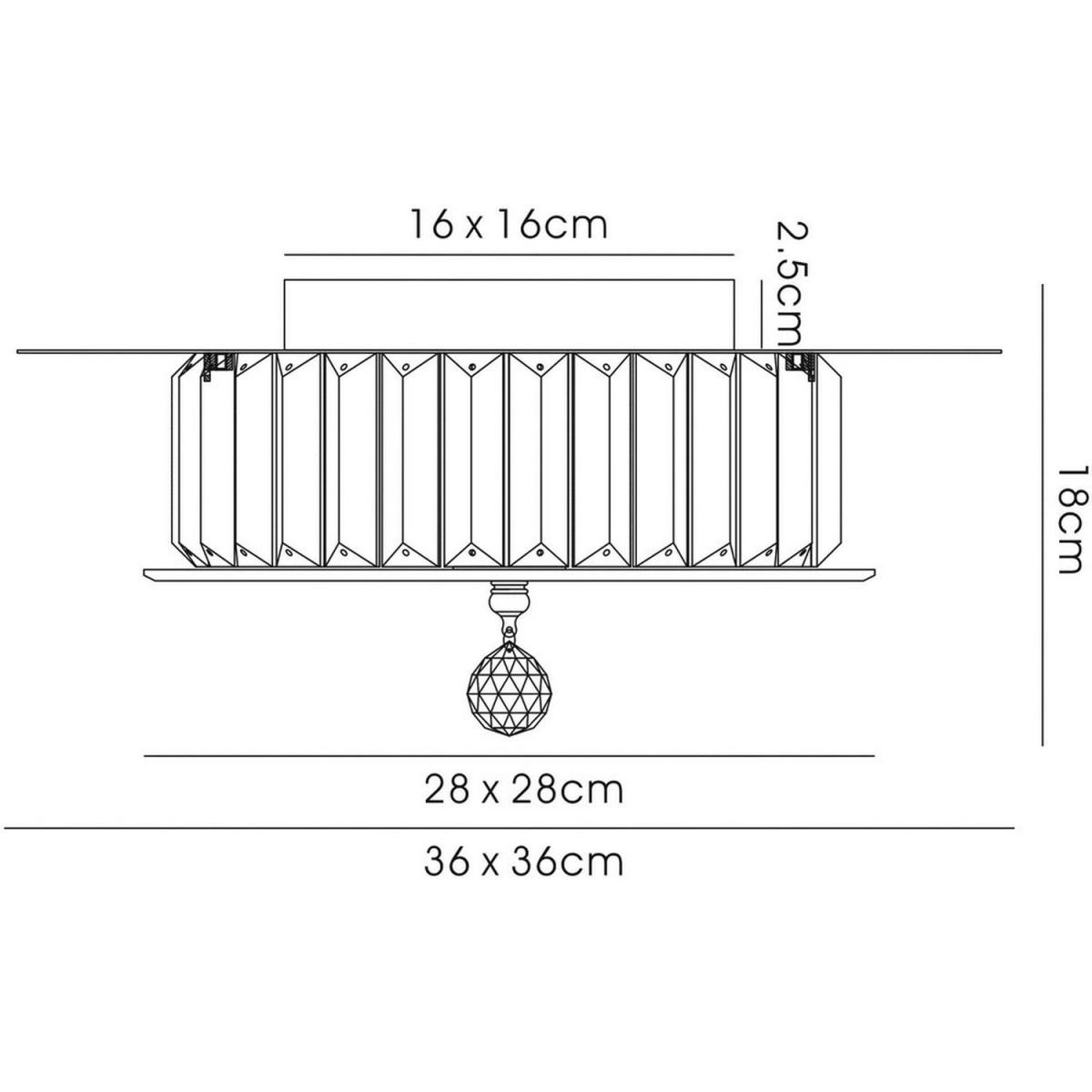 A stunning range of glass flush fittings mounted on either Polished Chrome or Antique Brass base plates. The fittings are dressed in a frame of rectangular crystal drops and a single crystal sphere. An attractive optical illusion is created as the crystal reflects on the oversized base plate. Though the large square glass creates a sandwich effect on the crystal, the clear edge ensures none of the glamour is sacrificed.