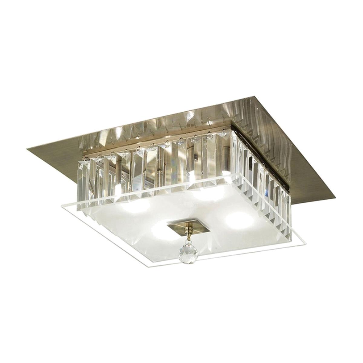 Tosca Flush Ceiling Square 4 Light Antique Brass, Glass, Crystal - Antique Brass