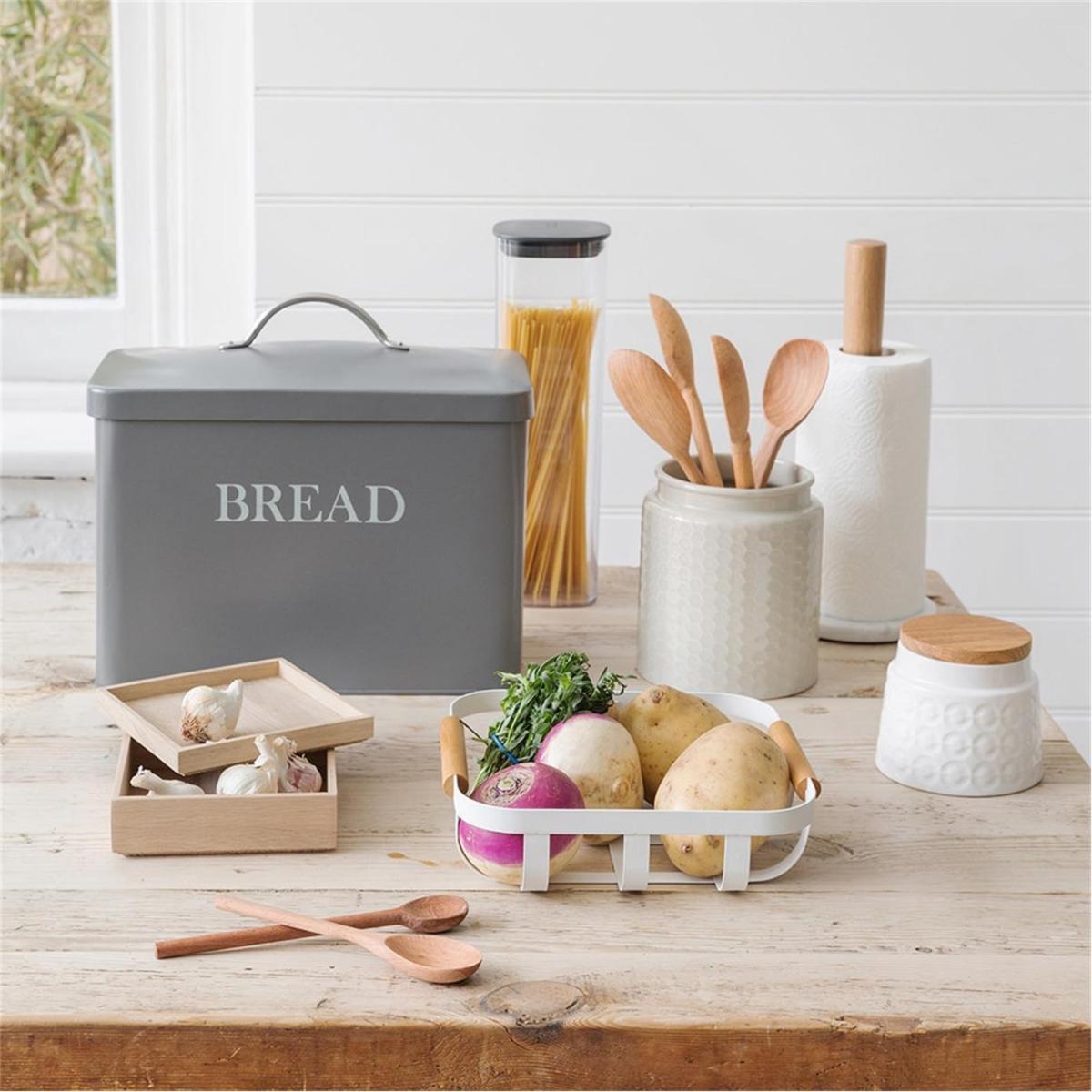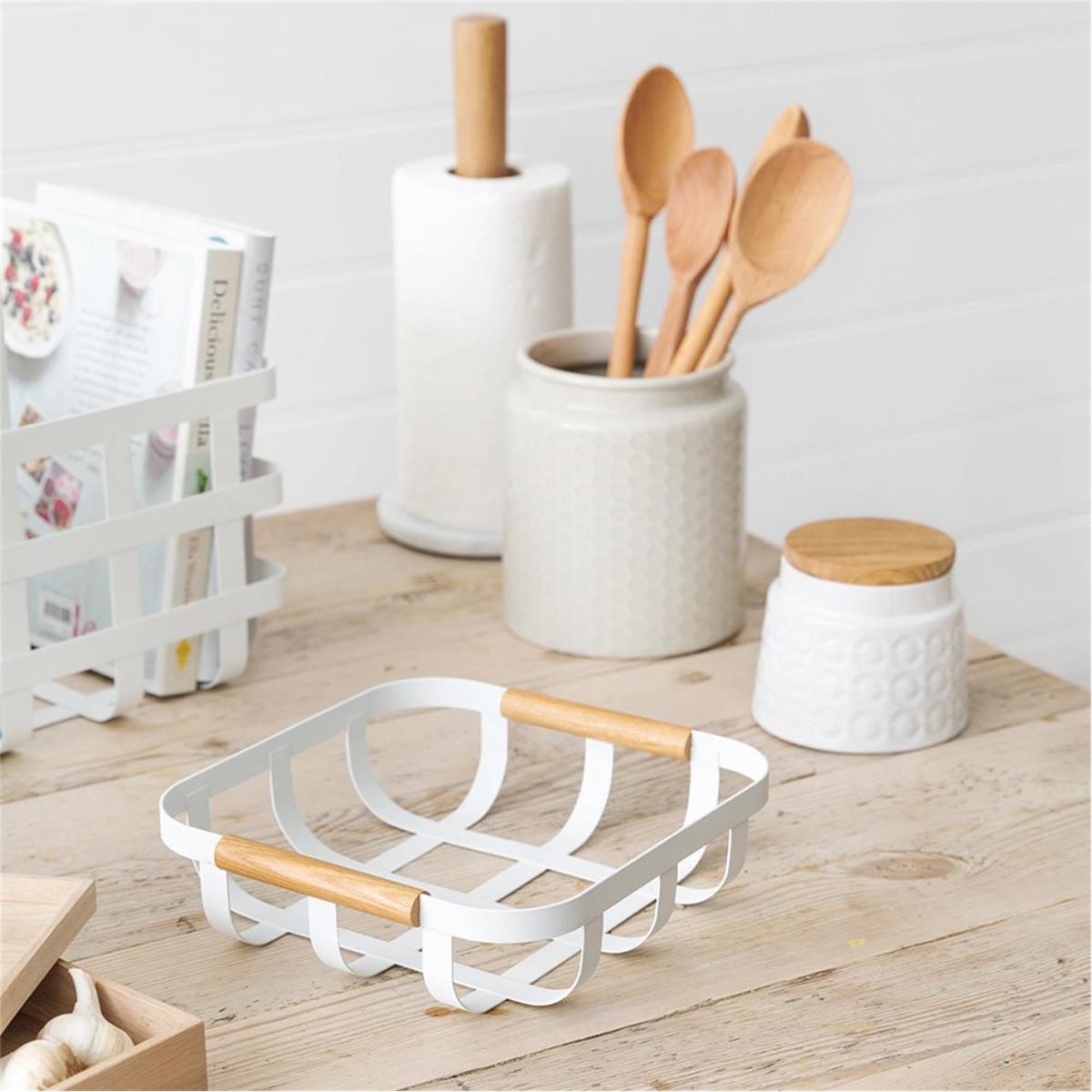 I love this small kitchen basket for its blend of practicality and subtle style. Its compact size makes it perfect for organising herbs, spices or small utensils on a worktop or inside a cupboard, while the white metal frame keeps it looking fresh and clean. The wooden handles add a touch of warmth and texture, making it versatile enough for both modern and rustic kitchen interiors. For styling, I’d suggest pairing it with neutral colour schemes for a minimalist look, or using it to bring a touch of organisation to open shelving displays. It’s equally handy as a catch-all for keys or mail near the entrance, offering both form and function without overwhelming the space.