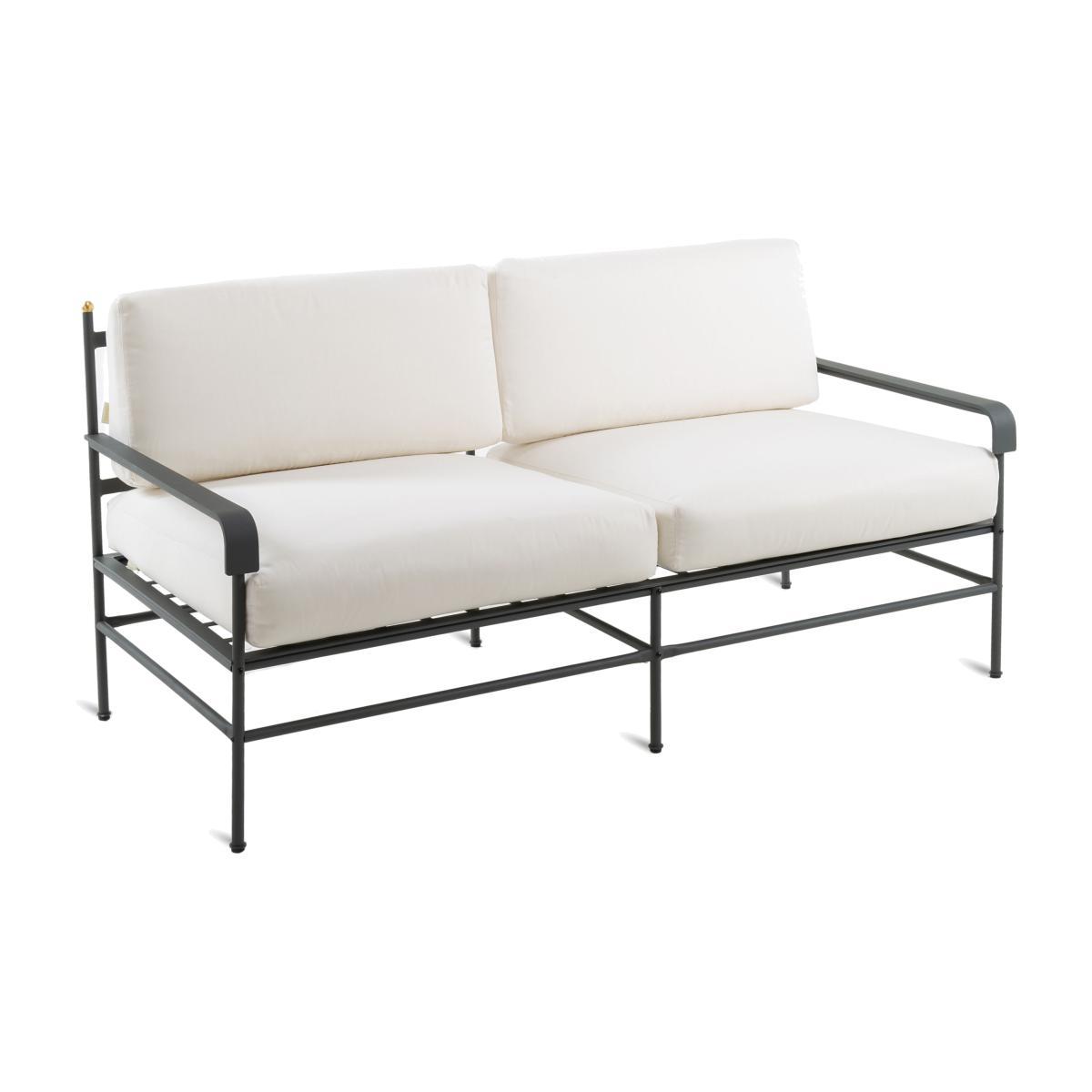 I love this sofa for its clean lines and versatile colour palette. Its minimalist iron frame gives it an industrial edge, making it a great choice for modern, Scandinavian, or contemporary interiors. The white and grey fabrics offer a neutral base that can be easily styled with colourful cushions or throws for added texture and personality. It works particularly well in open-plan living spaces or relaxed family rooms, where simplicity and comfort are key. For styling tips, consider pairing it with a textured rug and layered lighting to soften the industrial vibe, and opt for lightweight, breathable fabrics on cushions to keep the look fresh and inviting.
