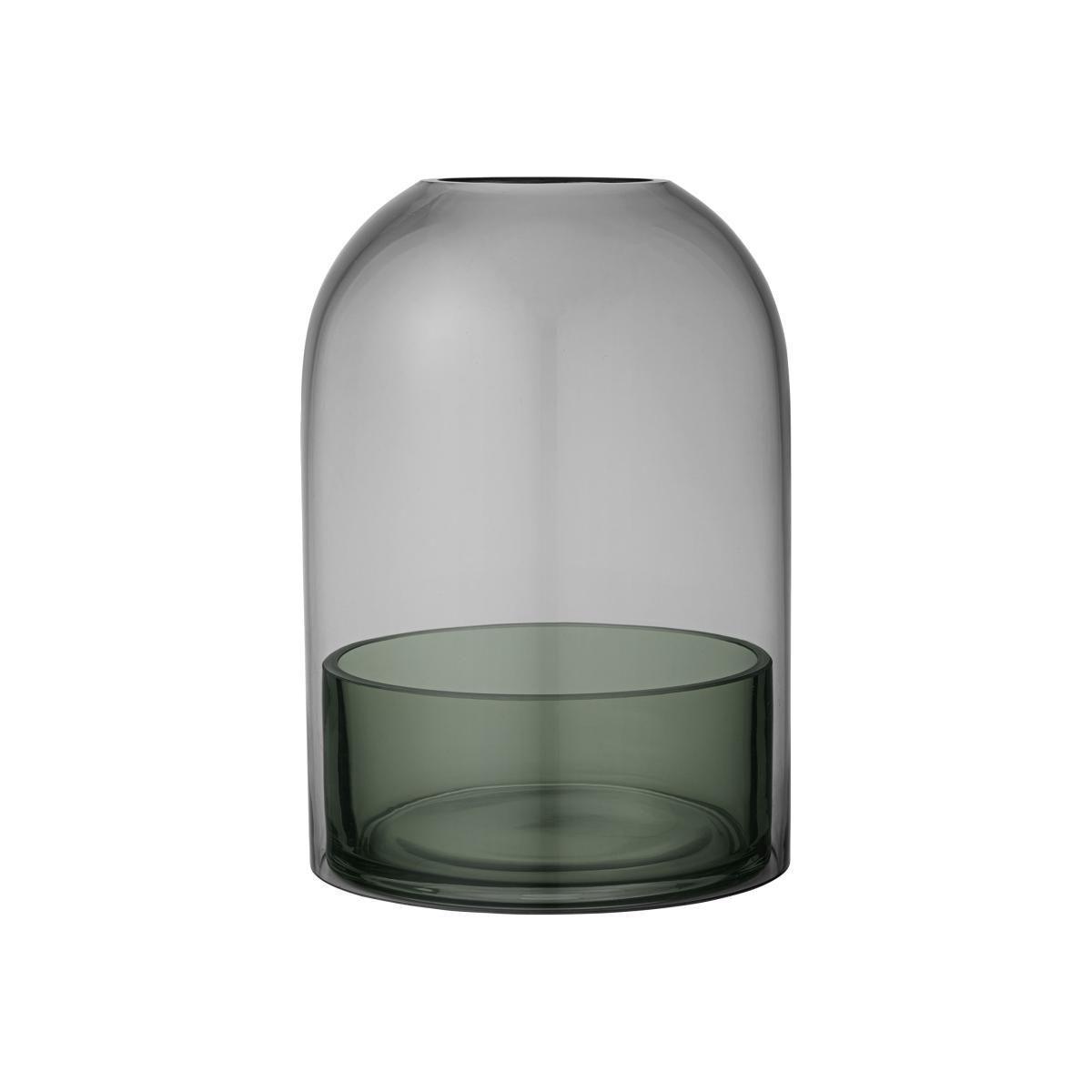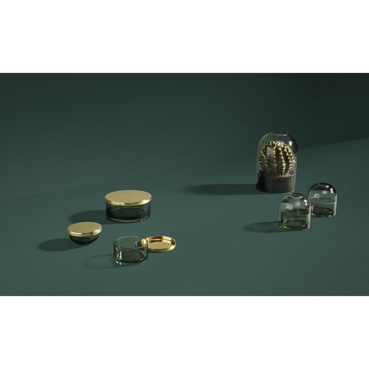 This pretty glass candle holder will create soft and intimate lighting, perfect for a festive meal or romantic evening. It includes two parts: a smoked grey bell over a forest green small dish on which the candle is placed. This candle holder protects the flame from the wind: it can be used inside and outside. You can also use the Tota as a showcase for a pretty plant (miniature cactus or similar).
