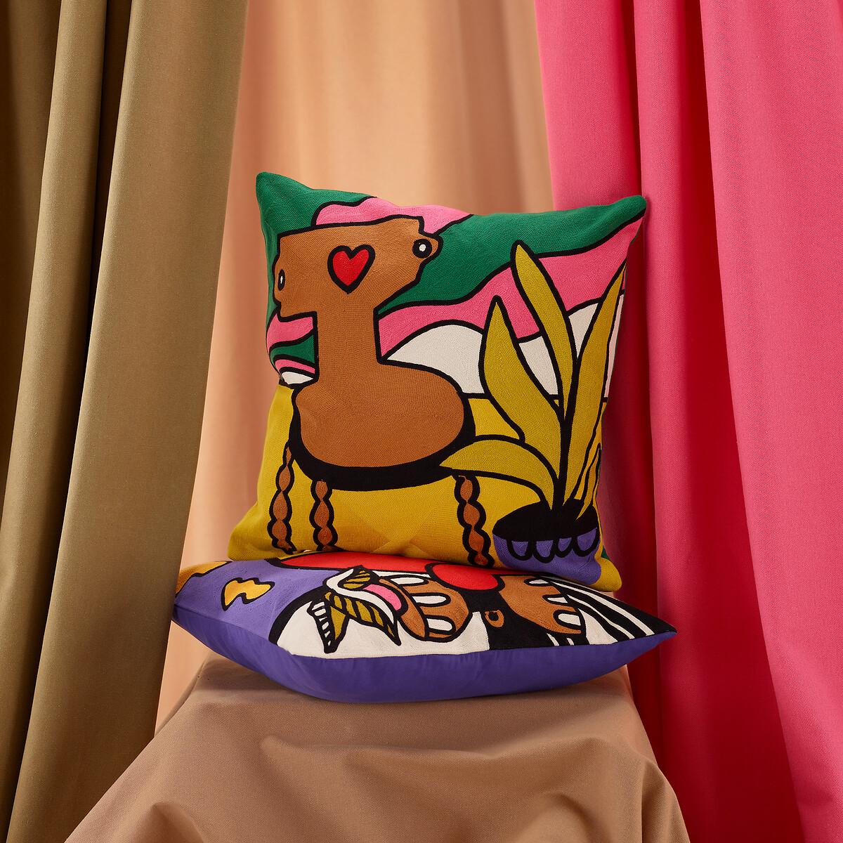 Eclectic and sophisticated, Mama Shelter X La Redoute Interiors is the result of the collaboration between the 2 brands' designers. A limited edition with limitless inspiration. This chain stitch embroidered cushion cover features the chair from the collection in a pop and playful colour palette. Let yourself be surprised by a tribe of design objects, inspiring and with a unique personality. Product Details • 100% cotton • Front: chain stitch embroidery • Plain back • Zip fastening. Sizes • 50 x 50cm • OEKO-TEX® Standard 100. Standard 100 certification by OEKO-TEX® tests textile products for harmful substances via an independent, international label.