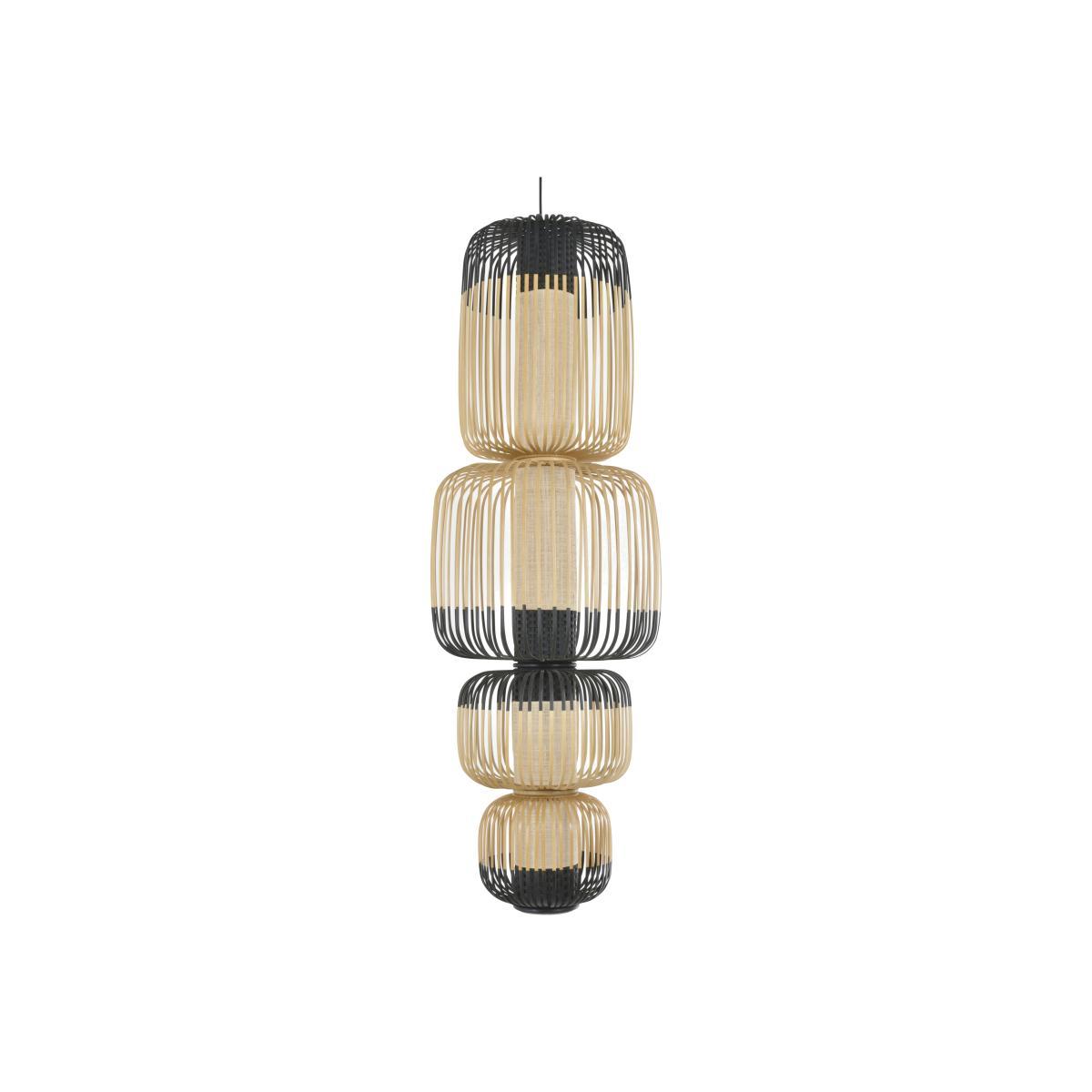 Totem Bamboo Light Pendant - / 4 lights - H 142 cm by Forestier Black/Natural wood