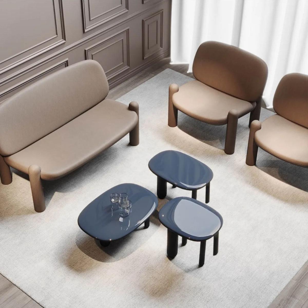 Fun, gentle and cleverly regressive, the Tottori collection combines tender colours with round, simple, solid forms. With their apparent simplicity, these round pieces of furniture take us straight back to the delicious, protected time of childhood. The Tottori collection creates a bold interior with a mischievous, easy-going feel. To create the Tottori collection, Ukrainian designer Kateryna Sokolova took inspiration from the animated Japanese film "My neighbour Totoro" by Hayao Miyazaki. Like an animated deign character, the padded seats with their reassuring roundness present an inviting silhouette. These coffee tables with their strong personality present an imposing, balanced play of volumes. Covered with an ultra-shiny lacquered finish, Tottori coffee tables are made up of a thick MDF top over large cylindrical legs of different diameters. The generous diameter of the legs determines the distinctive look of the whole collection. Essential in its forms, the Tottori collection has maximum expressive force. The curved lines break with our strict, linear everyday environments. This creation emits a positive energy, blended with the sensuality of simple shapes. Highly poetic, it adapts to different contexts, whether classic or contemporary. Looking after Tottori coffee tables: Clean with a damp cloth and wipe with a dry cloth. Use neutral liquid cleaning products; don’t use solvents (acetone, trichloroethylene) or abrasive products.