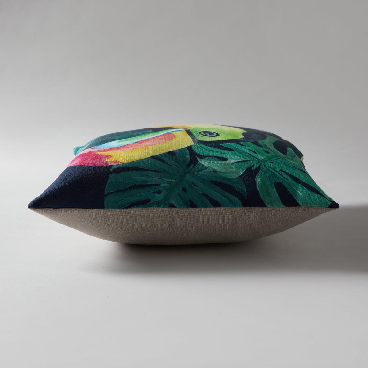 Made with a luxurious fibre fill for a stunning plump look, this cushion has an exotic toucan printed front and beige coloured back that will complement an array of home decors, while standing out in any room of the house. Secured with a zip fastened removable cover, this square shaped cushion is ideal for your home.