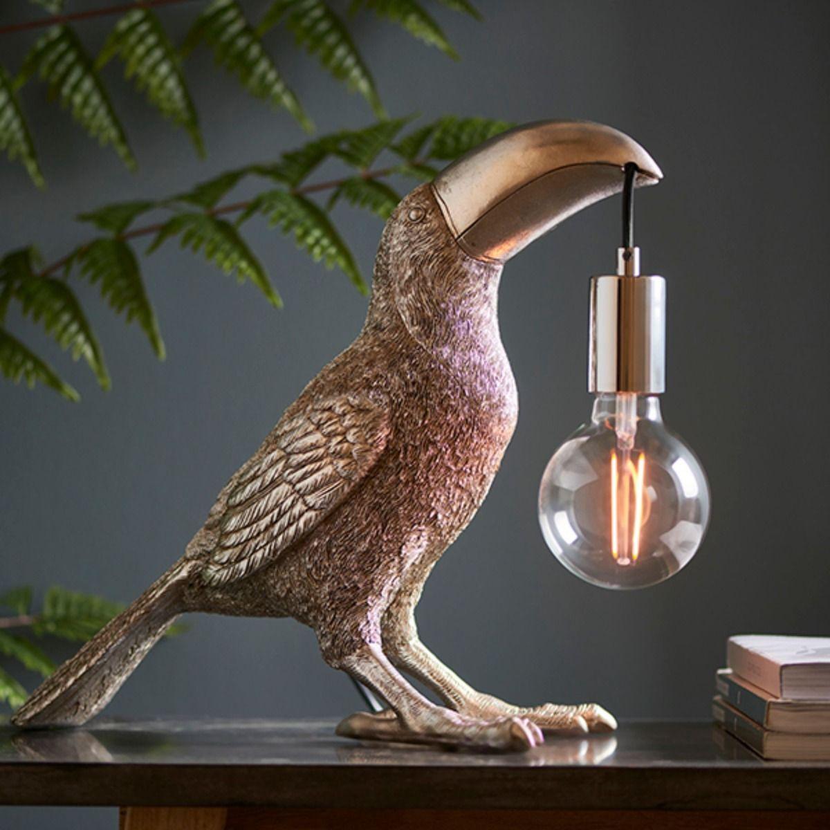 Toucan Silver Table Lamp This table lamp in the shape of a Toucan is a great addition to any home. The vintage silver figure holds the bulb holder in its beak, ideal for living rooms or bedrooms, the Toucan will give a great glow using a vintage style bulb. We think this light looks best with any of our E27 LED Vintage light bulbs for a rustic, warm glow Toucan Silver Table Lamp This table lamp in the shape of a Toucan is a great addition to any home. The vintage silver figure holds the bulb holder in its beak, ideal for living rooms or bedrooms, the Toucan will give a great glow using a vintage style bulb. We think this light looks best with any of our E27 LED Vintage light bulbs for a rustic, warm glow