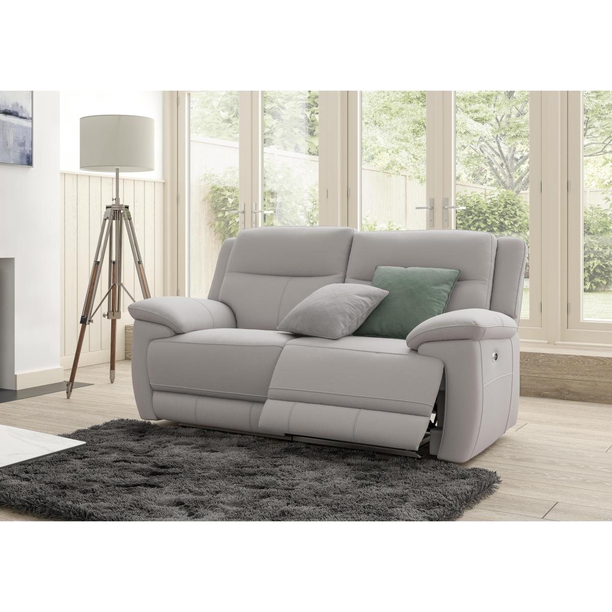 The sofas and chairs in the Touch collection are softly curved and fabulously comfortable. Their high backs, softly padded arms, luxury fibre back cushions and deep high-density foam and fibre seat cushions cocoon you in comfort, and with strong frames and no-sag spring seats they’re made to last. But what really sets them apart is their exceptionally soft to the touch fabric or leather upholstery. Find your perfect colour, then take the comfort to the next level with optional manual recliners or power recliners with USB ports. Spoil yourself with the high supportive back, deep cushioning and silky soft fabric upholstery of the Touch two seater fabric recliner sofa. It’s made to help you relax luxuriously, with luxury fibre back cushions and integral headrests, foam with fibre top arm cushions and high-density foam with fibre seat cushions that keep their shape for longer. This sofa has an impressively strong frame, with no-sag springs under the seats, so you know it will stand the tests of time. We love the subtle feature stitching, curved contemporary lines and fabric in a choice of colours. Relax even more with optional manual or power dual recliners. The power recliners even include very handy USB ports. The Touch two seater fabric recliner sofa is part of the Touch collection, made exclusively for Furniture Village at a great value price. Top Tip. To keep your fabric sofa or chair looking good, plump the seat and back cushions and any scatter cushions regularly, and – where possible – turn and rotate to ensure even wear. Plumping and rotation is important as interiors settle over time, and some fabrics can show wear on areas of more use or in direct sunlight. Using a soft brush or vacuuming with the curtain attachment weekly prolongs the life of fabric upholstery. Ideally clean professionally annually. If your sofa or chair is a recliner model, please allow time for the recliner to settle. Minor gaps are necessary for ease of motion, and vary depending on floor type. Manual recliners can feel a little stiff at first, but the motion eases with use.