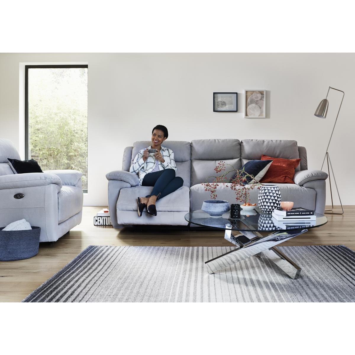 The sofas and chairs in the Touch collection are softly curved and fabulously comfortable. Their high backs, softly padded arms, luxury fibre back cushions and deep high-density foam and fibre seat cushions cocoon you in comfort, and with strong frames and no-sag spring seats they’re made to last. But what really sets them apart is their exceptionally soft to the touch fabric or leather upholstery. Find your perfect colour, then take the comfort to the next level with optional manual recliners or power recliners with USB ports. The Touch leather recliner armchair is beautifully made for your relaxation. It has a high, supportive back with an integral headrest, and a luxury fibre back cushion. The seat cushion is high-density foam with fibre, so it keeps its shape beautifully. You can even put your feet up if you wish, if you choose a manual or power recliner – the power recliner includes a useful USB port for recharging your devices. This armchair is made to stand the tests of time, with a strong frame and no-sag springs, so you can enjoy it for years to come. Choose your favourite colour for the family friendly leather upholstery. The Touch leather recliner armchair is part of the fantastic value Touch collection, exclusively made for Furniture Village. Did you know?. Leather is a beautiful, natural material with its own unique marks and characteristics, so texture, tone and colour can vary slightly in and between panels. Leather stretches, softens and settles with use. When you sit on a new leather sofa or chair it’s normal for the leather to ‘puddle’ slightly due to initial stretching. A simple smoothing of the leather across the top of the seat cushion if this occurs keeps your sofa or chair looking good. Interiors settle over time so, to maximise comfort, please plump the seat and back cushions regularly, and – where possible – turn and rotate to ensure even wear. Wipe leather upholstery with a damp cloth, and please use only the recommended cleaning products. If your sofa or chair is a recliner model, please allow time for the recliner to settle. Minor gaps are necessary for ease of motion, and vary depending on floor type. Manual recliners can feel a little stiff at first, but the motion eases with use.