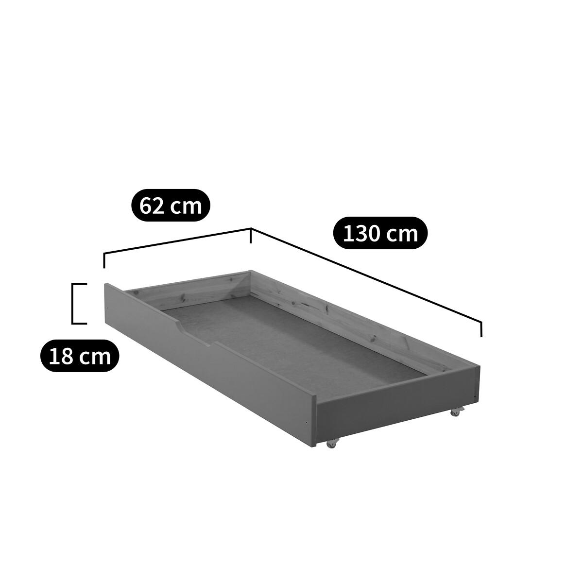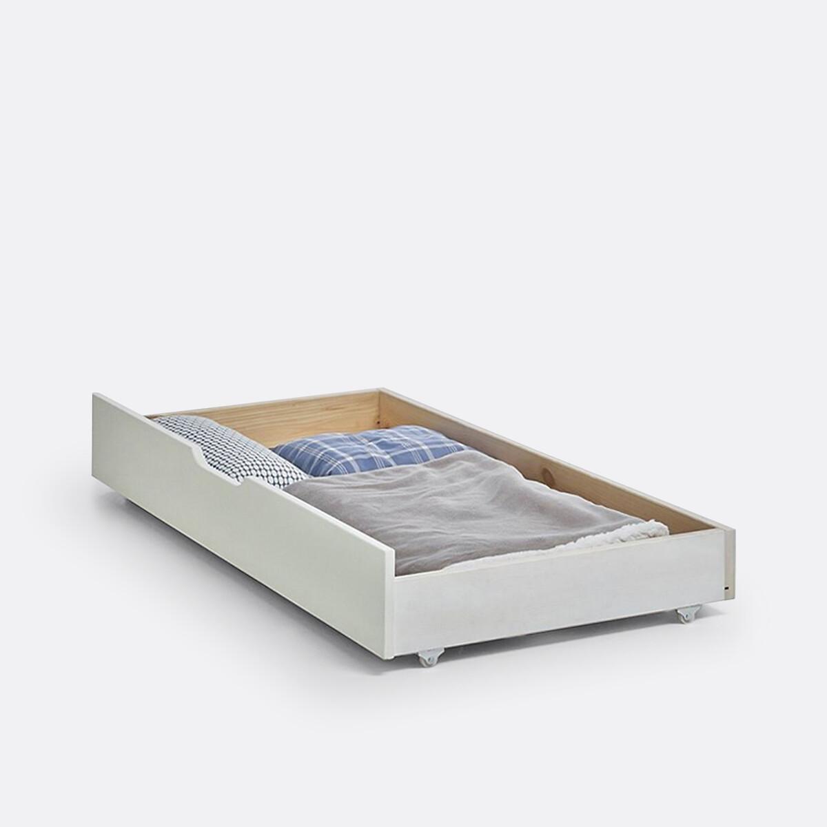 Drawer for Toudou junior bed. A practical and handy storage solution. Product Details • Pine with an acrylic finish. FSC® certified wood • Fibreboard base. Quality: • Our products conform to current safety standards. Dimensions. Total: • Length: 130cm • Height: 18cm • Depth: 62cm. Delivery: • Assembly required. Available for home delivery. Note! Please check that all access points are large enough to accommodate your delivery (doors, stairs, lifts). • WOOD FROM SUSTAINABLY MANAGED FORESTS. FSC® certified wood comes from forests that are environmentally, socially and economically well managed. Parcel Dimensions:1 parcel • L146 x H6 x D32cm • 9kg