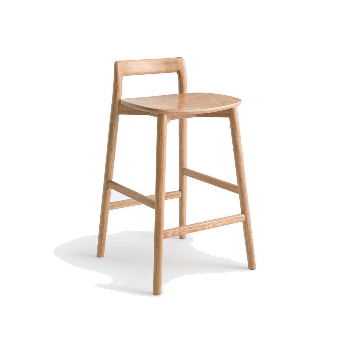 A stool that speaks volumes. Toullia blends natural oak and Japandi design for a warm, uncluttered style. With its low backrest, it combines comfort and style - perfect for enjoying a cuppa in your kitchen. Product Details • Frame, back and legs in solid oak with nitrocellulose varnish finish • Low backrest • Felt pads on feet • For a bar table or central island +/- 90cm highDimensions • . Width: 46cm • Height: 78cm • Depth: 47cm • Seat: L41 x H63 x D40 cm • Weight: 5kg • This product requires assembly. • WOOD FROM SUSTAINABLY MANAGED FORESTS. FSC® certified wood comes from forests that are environmentally, socially and economically well managed. Dimensions and weight of parcel • 1 parcel • L53 x H84 x D52cm, 7.2kg