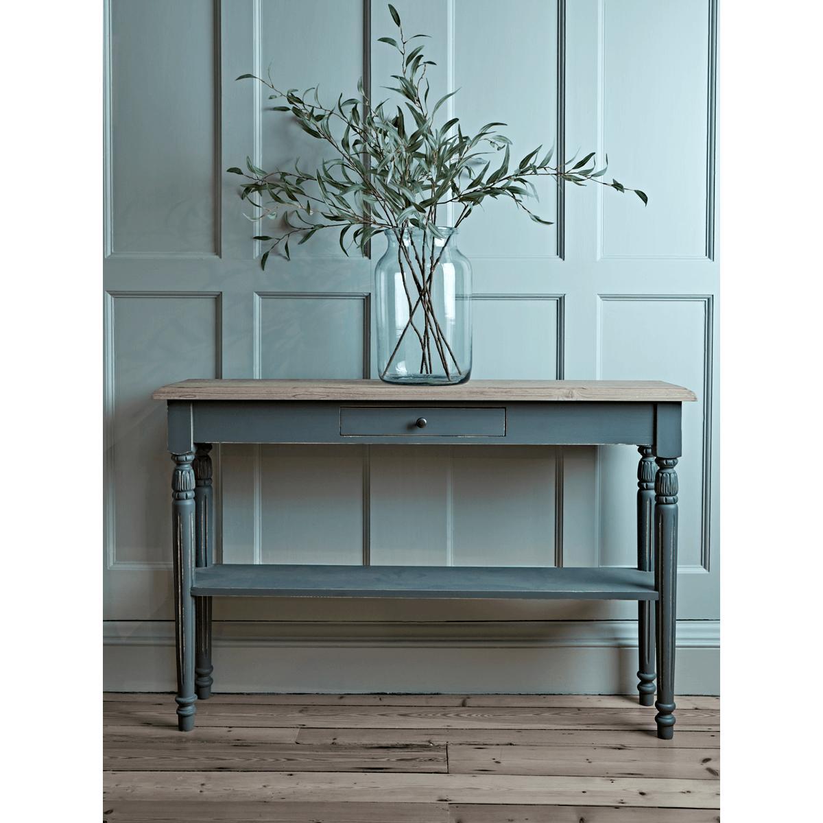 I love this little console because of its versatile dark grey finish, which makes it easy to integrate into a variety of interiors-from modern to rustic. It works particularly well in an entryway or beside a sofa to add a practical surface for keys, lamps, or decorative objects. The tapered legs and simple design keep it looking elegant without overwhelming smaller spaces. For styling, consider layering with a decorative tray, a small table lamp, or some greenery to bring the space to life. It's also a great choice for pairing with neutral palettes, but it would look equally striking against darker or coloured walls for a more contemporary look.