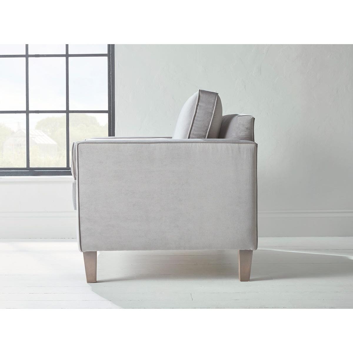 Bolster style cushions add a classical elegance to the architectural lines of our Toulon range of bespoke living room furniture. The Loveseat has a sculptural profile led by a mid-century aesthetic which follows slender square lines and tapered wooden legs. Round bolster cushions set inside each arm are a stylish refinement. Elegant piping provides a sophisticated finish. Promising the same handcrafted premium quality of all our made to order ranges, the Toulon sofa is a statement piece that can hold its own in formal settings or add a touch of gravity in laid back interiors. The Toulon range includes two seater and three seater sofas, a loveseat and an ottoman. Our Toulon collection can be upholstered in a choice of 34 distinctive shades and six fabrics to suit your style. Read our Upholstery FAQs View our full Upholstery Terms and Conditions