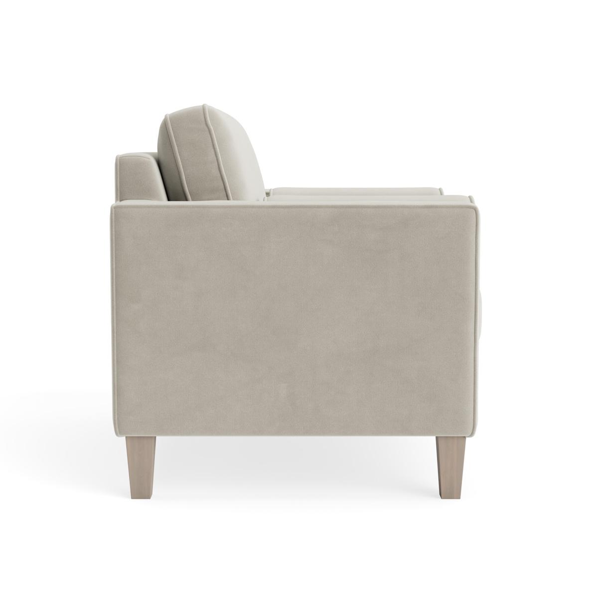 Bolster style cushions add a classical elegance to the architectural lines of our Toulon range of bespoke living room furniture. The Loveseat has a sculptural profile led by a mid-century aesthetic which follows slender square lines and tapered wooden legs. Round bolster cushions set inside each arm are a stylish refinement. Elegant piping provides a sophisticated finish. Promising the same handcrafted premium quality of all our made to order ranges, the Toulon sofa is a statement piece that can hold its own in formal settings or add a touch of gravity in laid back interiors. The Toulon range includes two seater and three seater sofas, a loveseat and an ottoman. Our Toulon collection can be upholstered in a choice of 34 distinctive shades and six fabrics to suit your style. Read our Upholstery FAQs View our full Upholstery Terms and Conditions