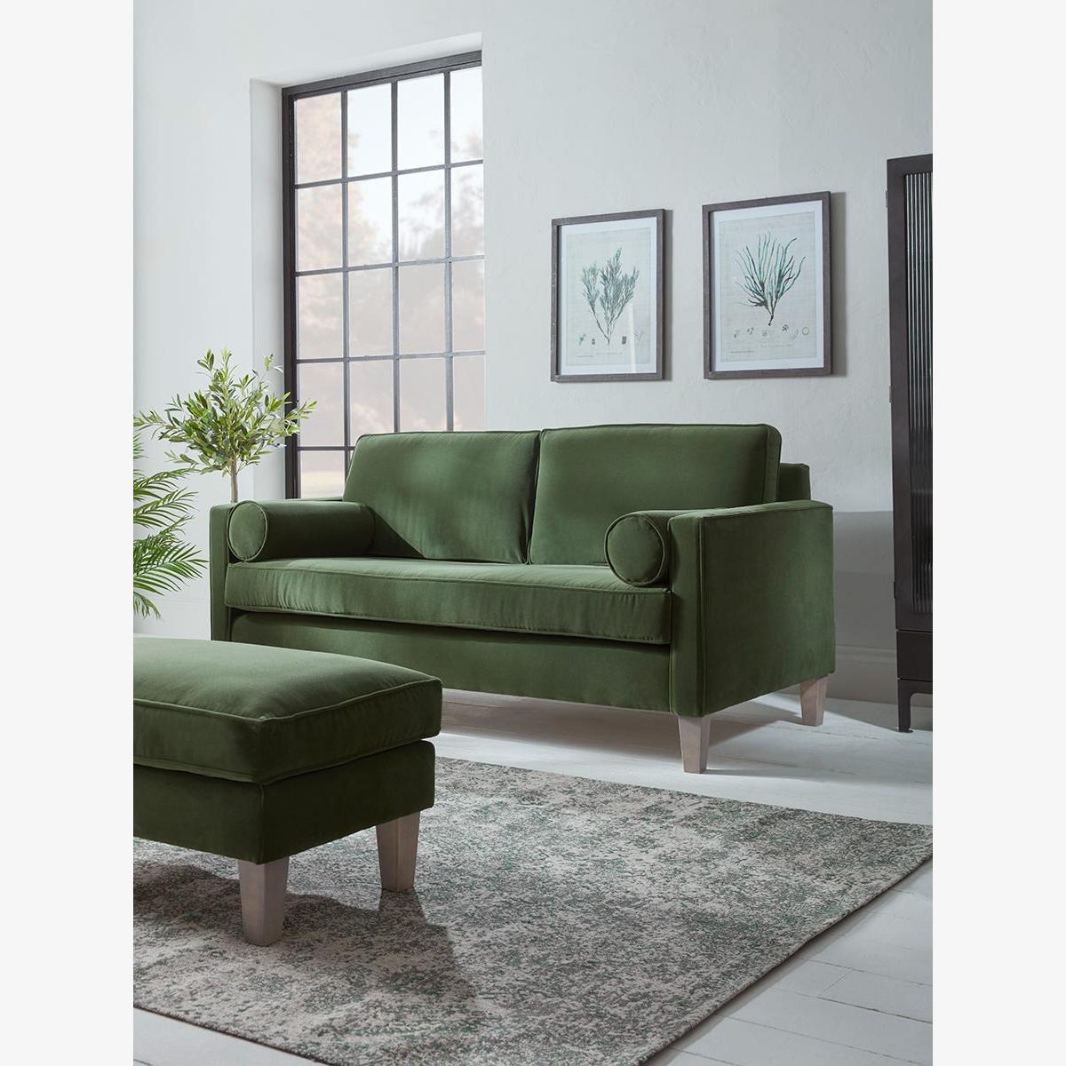 With a piped cushioned top that echoes the elegant finishing details of both the Toulon sofa and the loveseat, the matching ottoman is the final piece for a comprehensive living room scene. The Toulon range includes two seater and three seater sofas, a loveseat and an ottoman. Our Toulon collection can be upholstered in a choice of 34 distinctive shades and six fabrics to suit your style. Cotton Linen Our cotton linen mix comes in 10 carefully curated shades and has a brushed finish which leaves this plain weave durable, but still peachy soft to the touch. 63% cotton 37% linen Smart Velvet With the same luxurious look and feel of cotton velvet, this collection of 10 richly coloured velvets is a stain resistant and hardwearing option for busy homes. 100% polyester Herringbone In a choice of six chalky pastels and classic neutrals, this herringbone fabric features a subtle self-coloured weave for a textural finish. 25% cotton 25% linen 25% viscose 25% polyester Bouclé With three neutral colours to choose from, our bouclé fabric is springy to the touch and wonderfully soft, providing both depth and warmth. 80% polyester 10% acrylic 10% cotton Leather Supple and luxurious natural leather that has been lightly buffed and carefully brushed with oils and waxes to achieve a soft buttery feel. 100% leather For further information on the range, please select one of the following: Order a fabric swatch Read our Upholstery FAQs View our full Upholstery Terms and Conditions