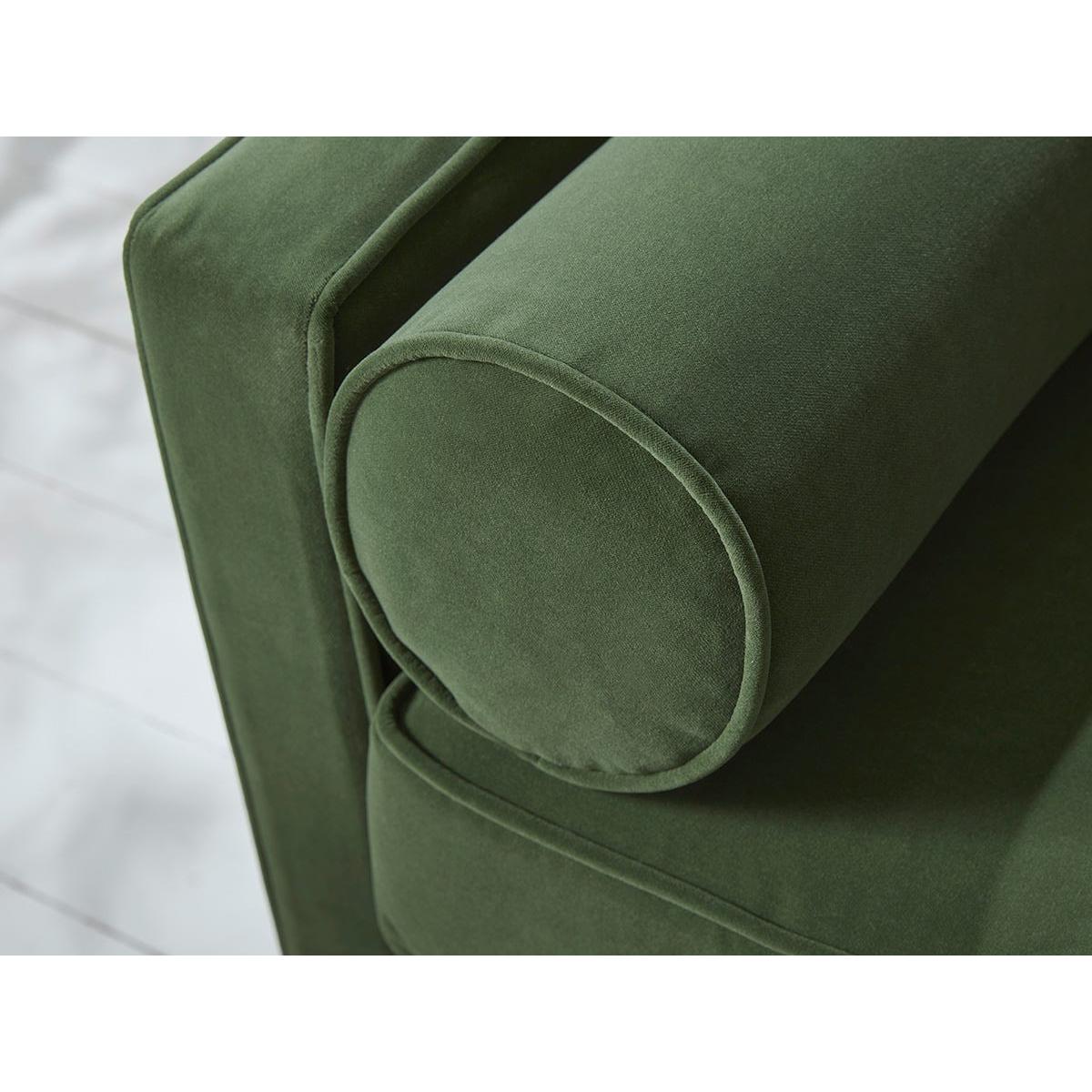 Bolster style cushions add a classical elegance to the architectural lines of our Toulon range of bespoke living room furniture. The sofa has a sculptural profile led by a mid-century aesthetic which is revealed in the slender square lines and tapered wooden legs. Round bolster cushions set inside each arm are a stylish refinement. Elegant piping provides a sophisticated finish. Promising the same handcrafted premium quality of all our made to order ranges, the Toulon sofa is a statement piece that can hold its own in formal settings or add a touch of gravity to laid back interiors. The Toulon range includes two seater and three seater sofas, a loveseat and an ottoman. Our Toulon collection can be upholstered in a choice of 34 distinctive shades and six fabrics to suit your style. Read our Upholstery FAQs View our full Upholstery Terms and Conditions