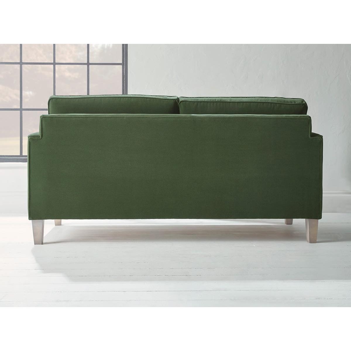 Bolster style cushions add a classical elegance to the architectural lines of our Toulon range of bespoke living room furniture. The sofa has a sculptural profile led by a mid-century aesthetic which is revealed in the slender square lines and tapered wooden legs. Round bolster cushions set inside each arm are a stylish refinement. Elegant piping provides a sophisticated finish. Promising the same handcrafted premium quality of all our made to order ranges, the Toulon sofa is a statement piece that can hold its own in formal settings or add a touch of gravity to laid back interiors. The Toulon range includes two seater and three seater sofas, a loveseat and an ottoman. Our Toulon collection can be upholstered in a choice of 34 distinctive shades and six fabrics to suit your style. Read our Upholstery FAQs View our full Upholstery Terms and Conditions