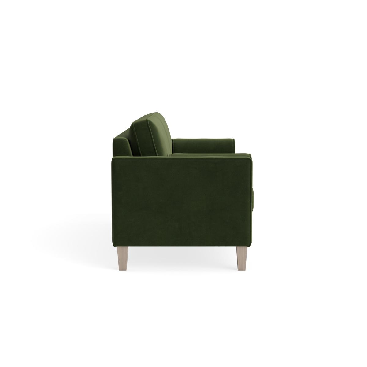 Bolster style cushions add a classical elegance to the architectural lines of our Toulon range of bespoke living room furniture. The sofa has a sculptural profile led by a mid-century aesthetic which is revealed in the slender square lines and tapered wooden legs. Round bolster cushions set inside each arm are a stylish refinement. Elegant piping provides a sophisticated finish. Promising the same handcrafted premium quality of all our made to order ranges, the Toulon sofa is a statement piece that can hold its own in formal settings or add a touch of gravity to laid back interiors. The Toulon range includes two seater and three seater sofas, a loveseat and an ottoman. Our Toulon collection can be upholstered in a choice of 34 distinctive shades and six fabrics to suit your style. Read our Upholstery FAQs View our full Upholstery Terms and Conditions