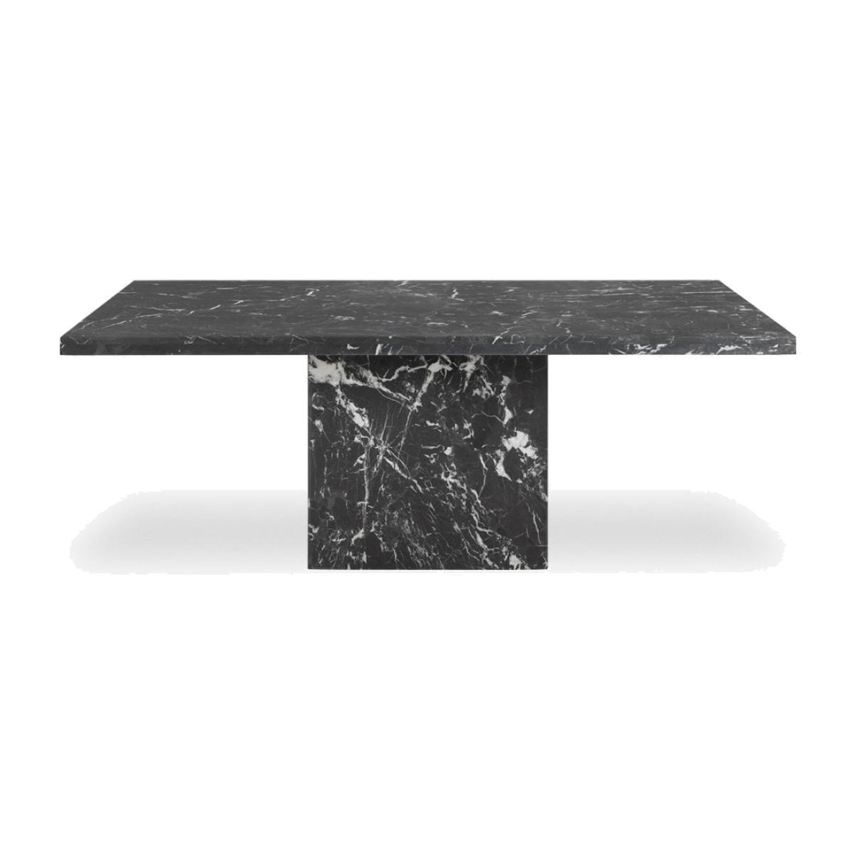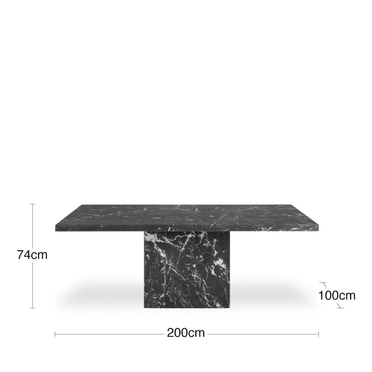 The Toulouse Marble Dining Table is the showstopping centrepiece every dining space desires. Crafted from Irzmirian black marble for refined Italian design, the Toulouse is guarnteed to be the talk of the table. The central pillared base and larger than average rectangular top gives that extra spacious dining experience and allows you to fit in any extra unexpected guests. This sculptural timeless design is suitable for up to 8-10 people. The Toulouse is handcrafted from natural black marble with soft white veining, making each piece unique with naturally occurring texture, pattern, and colour. These variations should be seen as part of the beauty of the design that makes this a truly one-of-a-kind piece.